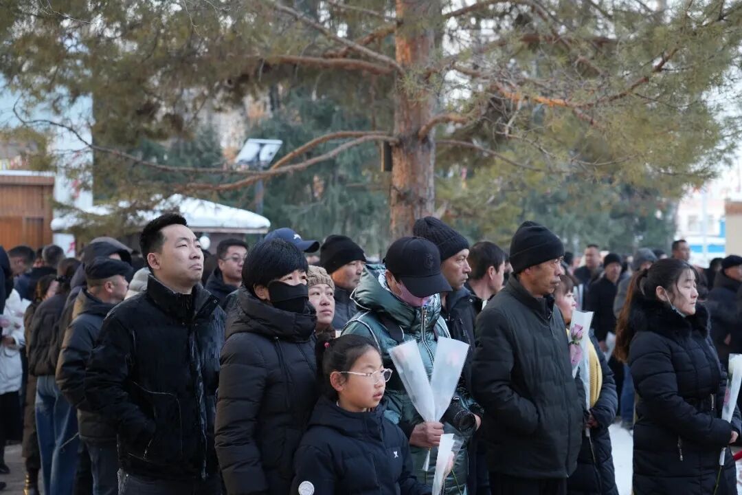 举行完迎接仪式后,被精心包装好的“娇龙月季”放在了厅内正中央,大批市民手拿鲜花,不畏严寒,冒着零下10℃的严寒排队进厅参观。