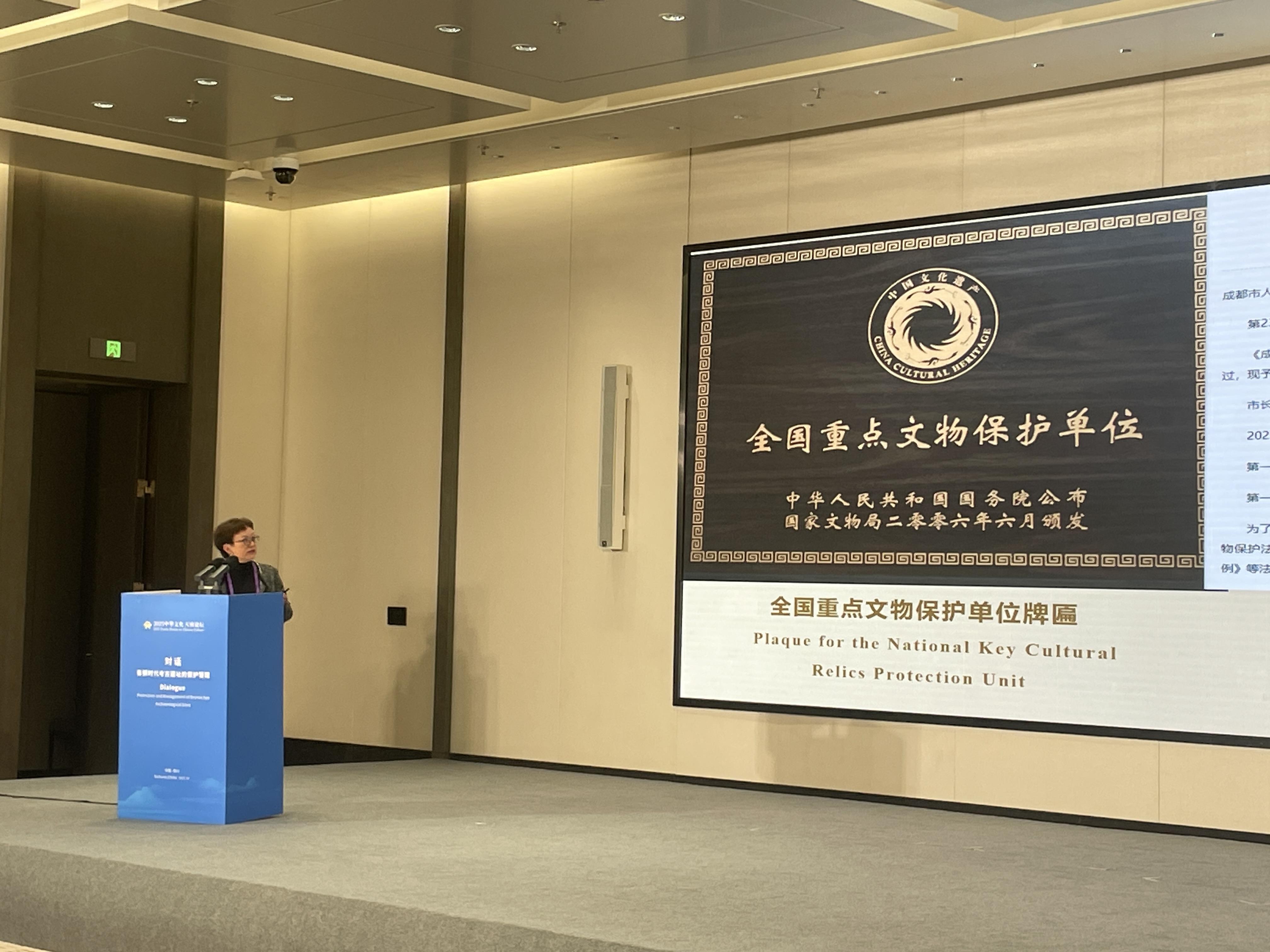 论坛现场,成都金沙遗址博物馆副馆长王方也分享到了金沙遗址保护展示的创新实践。她表示,金沙坚持“保护第一”,在馆藏文物与土遗址保护与监测等方面取得显著成效,实现了藏品保存状况及保存环境24小时实时监测和调控。此外,金沙也以展览促交流,搭建国际朋友圈。“金沙携手三星堆遗址已联合举办古蜀文明展览100余次,先后走进国内外100多个城市,推动了古蜀文明走出家门,走向世界。”