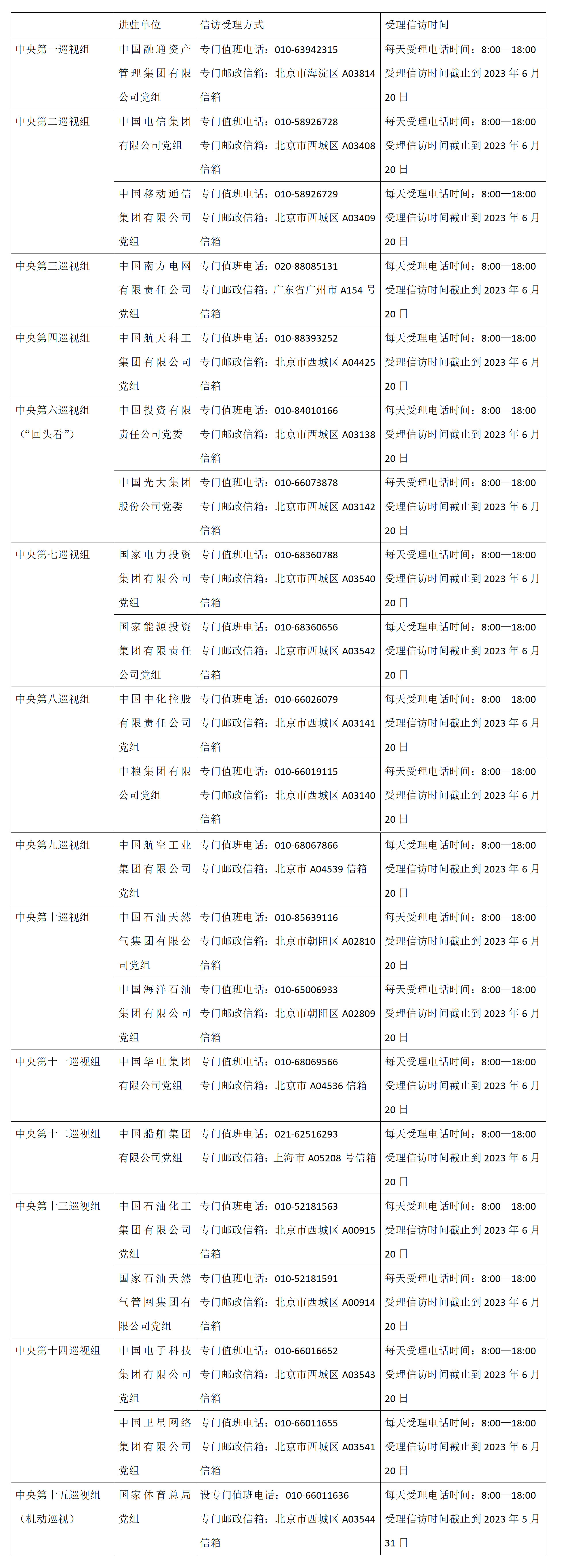 日前,二十届中央第一轮巡视的15个巡视组开始陆续进驻被巡视单位党组织开展巡视工作。第二批集中进驻的21家被巡视单位信访受理方式已经公布。