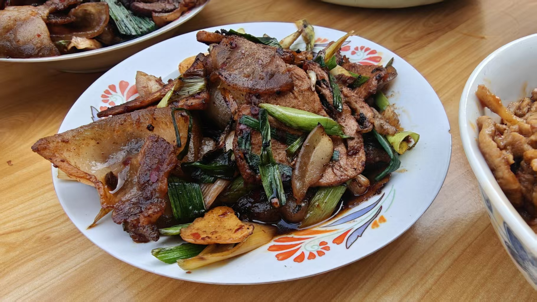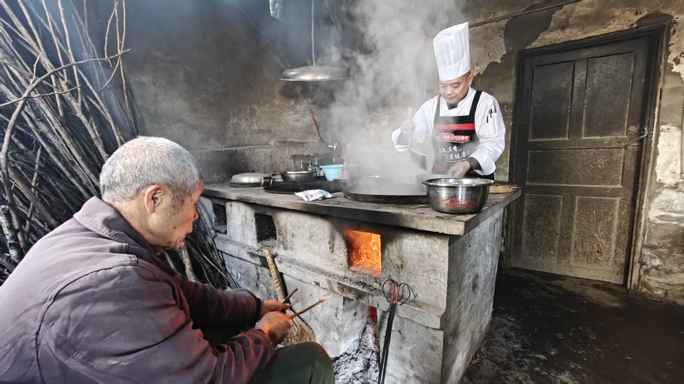 进村后,还特意安排厨师,在村民家的灶台上做内江黑猪回锅肉。选肥瘦相宜的内江黑猪二刀肉,下锅煸出油脂香,再搭配豆瓣酱翻炒,不一会儿,浓郁的肉香就飘满了村里,吸引不少村民围过来。大家尝着刚出锅的回锅肉,都夸肉质细嫩不油腻,香味很足。