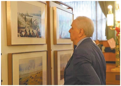 俄罗斯观众参观在俄罗斯首都莫斯科举行的“铭记历史 开创未来——纪念中国人民抗日战争暨世界反法西斯战争胜利80周年图片展”。 本报记者 肖新新摄