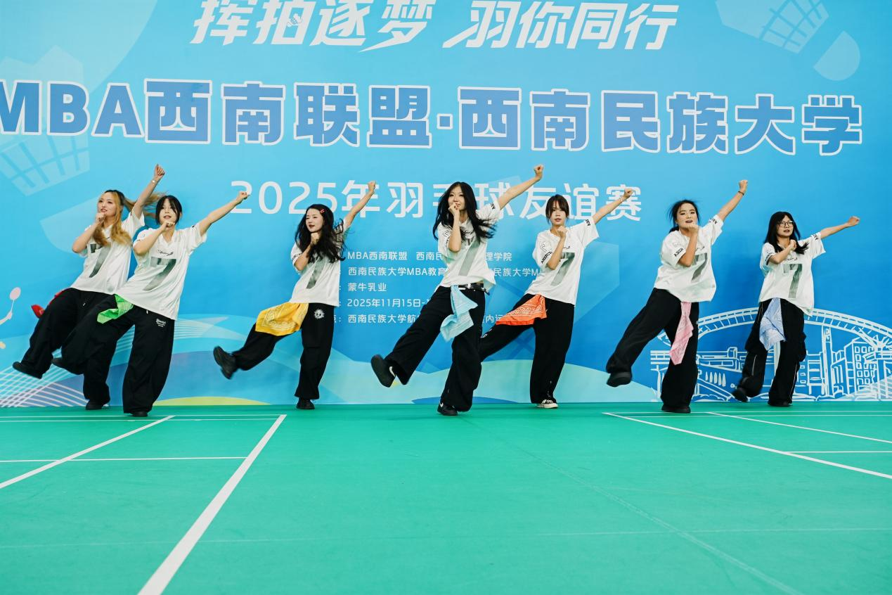 颁奖典礼上,中国MBA西南联盟理事长安艳星,西南民族大学党委常、副校长乔俊杰及管理学院领导班子成员,依次为获奖运动员颁奖。西南民族大学24级MBA舞团带来了活力四射的舞蹈表演。西南民族大学管理学院副院长顾兴树指出,本次赛事不仅展现了西南地区高校师生的体育竞技风采,更传递了“竞技为桥、友谊为先”的体育精神,希望通过赛事让师生在运动中感悟管理智慧,在交流中凝聚发展共识。