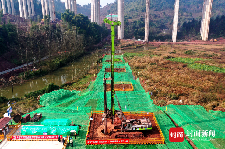 据京昆高速铁路西昆有限公司消息,2月17日,由中铁四局承建的铜钵河特大桥施工现场打桩机打下第一根桩,标志着西渝高铁四川段进入全面主体施工阶段。