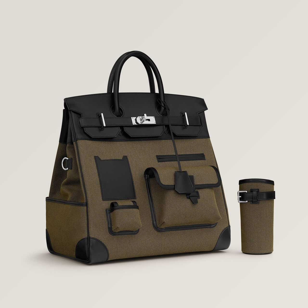 受利落军装启迪,以帆布和皮革巧妙拼接而成,展现人文 创意与至臻工艺交织出的美妙可能。多口袋设计以简洁线条打破陈规,淋漓演绎妙趣横生的设计语言,配合皮质扁平卡包及别具一格的可拆卸水瓶套,率性彰显实用主义美学,充分展露大胆前卫的冒险家精神。