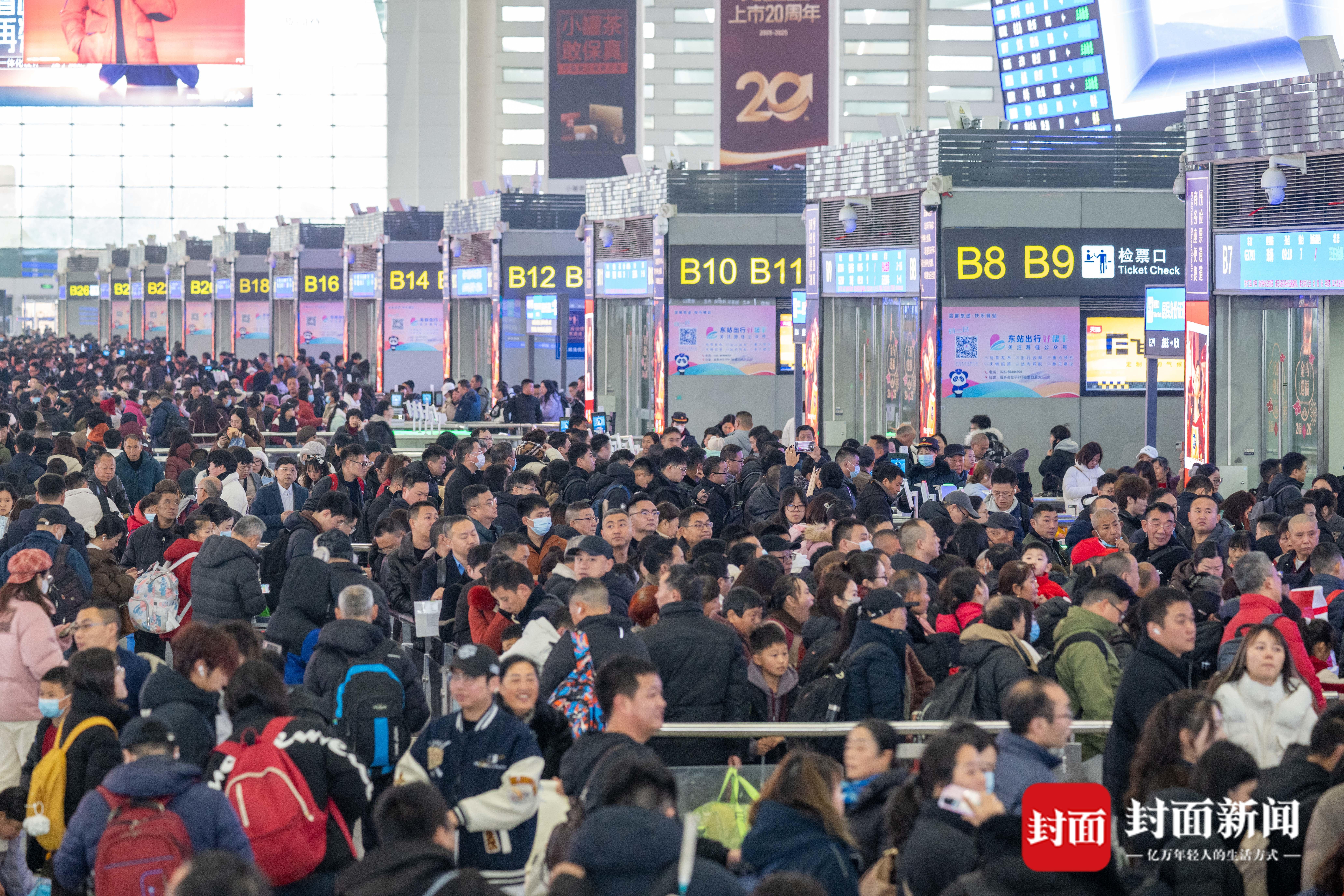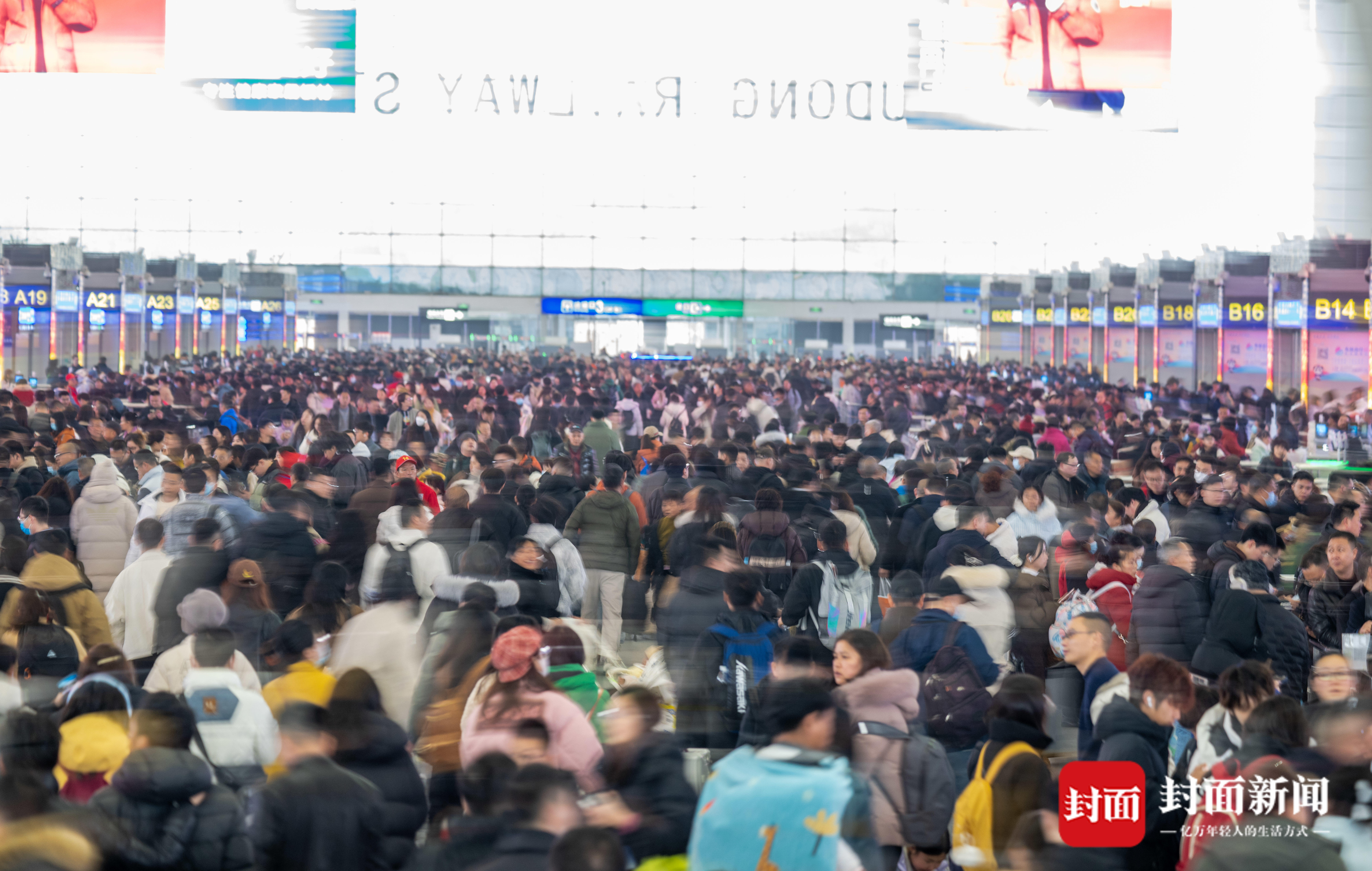 农历新年将至,2026年春运也在今天开启大幕。2月2日上午,封面新闻记者来到铁路成都东站,候车大厅内人潮涌动,南来北往的乘客踏上归家和出游之路。