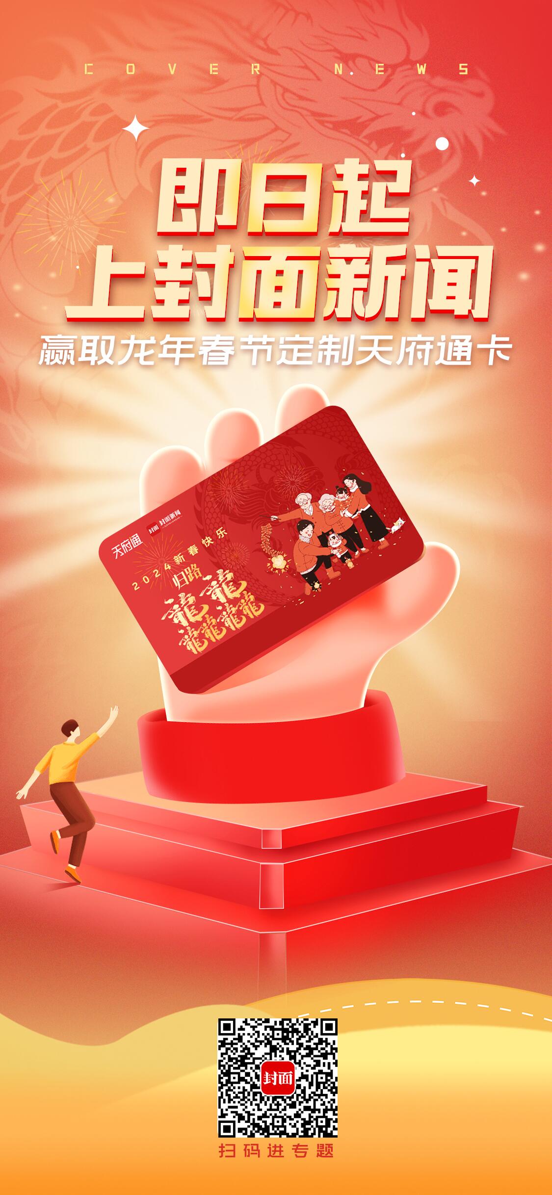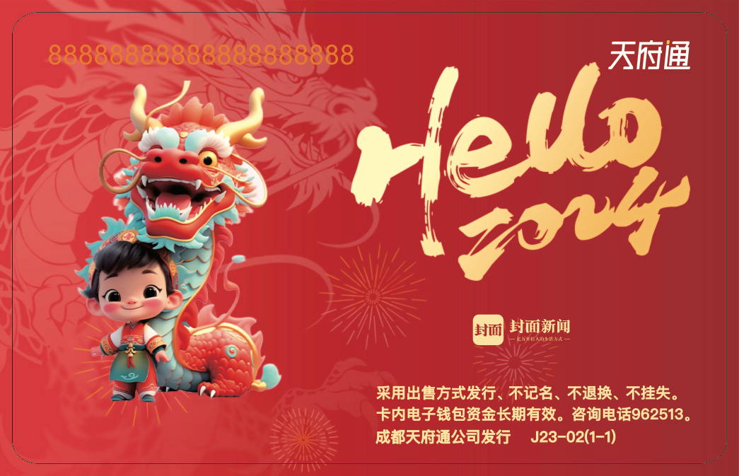 此外,我们还准备了一份专属归家礼,陪伴大伙儿一起回家过新春。封面新闻联合成都天府通推出2024年龙年春节定制天府通卡,喜庆的红色,搭配上一系列回家元素,团聚感满满。定制卡除了值得收藏外,实用性也是拉满,该卡可以在成都、攀枝花、德阳、遂宁、眉山、资阳、雅安、阿坝七市一州充值后使用。
