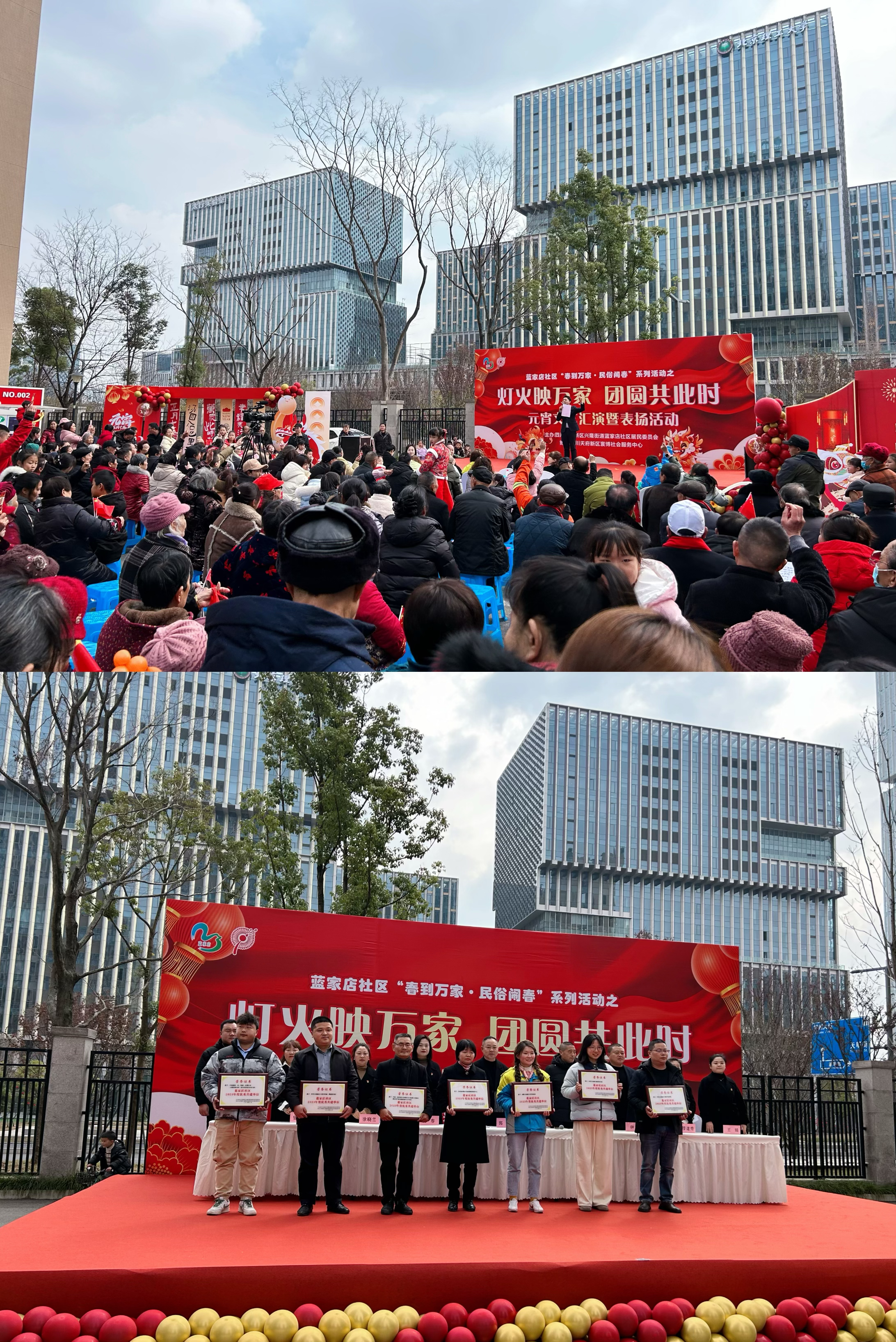 2月24日,元宵节当晚,四川天府新区兴隆街道蓝家店社区举行了“春到万家·民俗闹春”系列活动之“灯火映万家,团圆共此时”元宵文艺汇演暨表扬活动。文艺汇演涵盖舞蹈、歌唱、传统乐器演奏、变脸等多种表演形式,将传统文化元素与艺术表演完美融合,为社区居民带来了一场精彩的视听盛宴。活动中,社区还为2023年度15家先进单位和57位先进个人代表,进行了颁奖。此次活动的成功举行标志着蓝家店社区“春到万家·民俗闹春”系列活动圆满收官,此前,在2月10日大年初一举行了“龙年行大运,团圆闹新春”慰问活动、2月11日大年初二举行了“大桔大利,柿柿如意”新春主题手作活动、2月12日大年初三举行了“‘花’点时间,装点幸福”新春年宵花DIY活动。下一步,蓝家店社区将进一步整合各类资源,持续为居民带来充实又丰富多彩的文化生活,增进居民之间的情感交流和互动,传递与邻为善的观念,努力构建幸福蓝家店,不断提升居民的获得感、幸福感和归属感。
