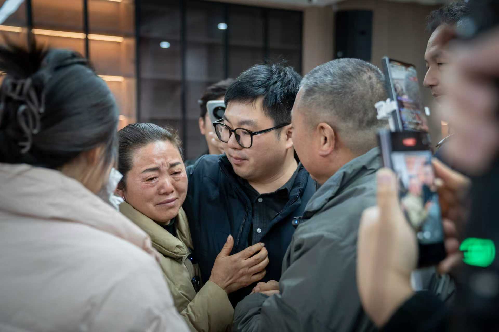 当马颜伟的身影出现时,他们快步迎了上去,紧紧抱住这个朝思暮想的家人。看着泣不成声的父母和姐姐,马颜伟擦了擦泪水说,“今天是开心的事,都不要哭。”