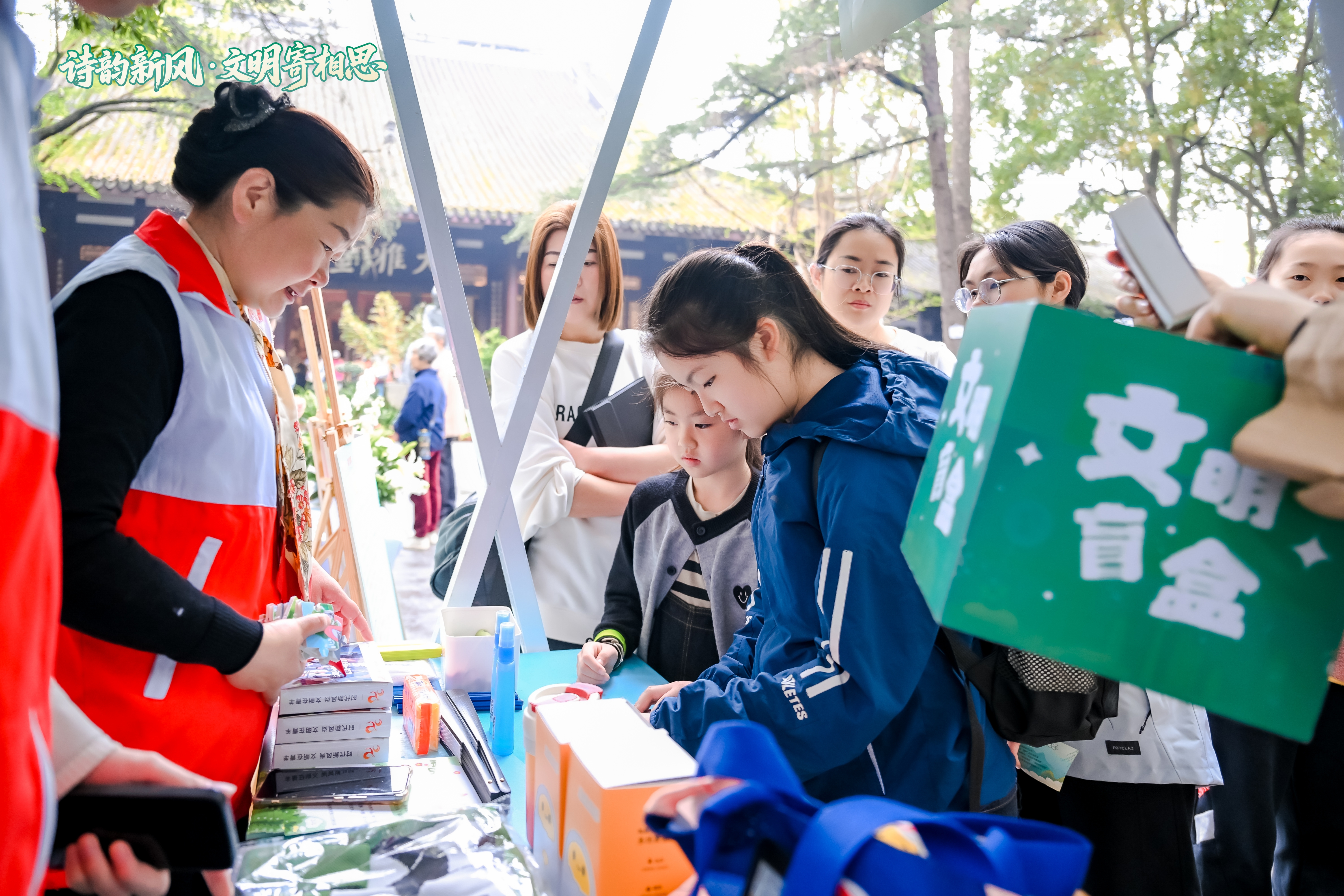 活动当天,草堂内诗意盎然、庄重温馨。沿前廊打造的诗词文化走廊成为亮眼风景线,一幅幅由本地书法家精心创作的清明主题诗词卷轴整齐悬挂,搭配通俗白话注解,将“清明思念”与“草堂故事”娓娓道来;地面铺就的“诗词地贴”印刻经典诗句,市民漫步其间,仿若穿行于千年诗韵之中,在移步换景间感悟传统文化魅力。