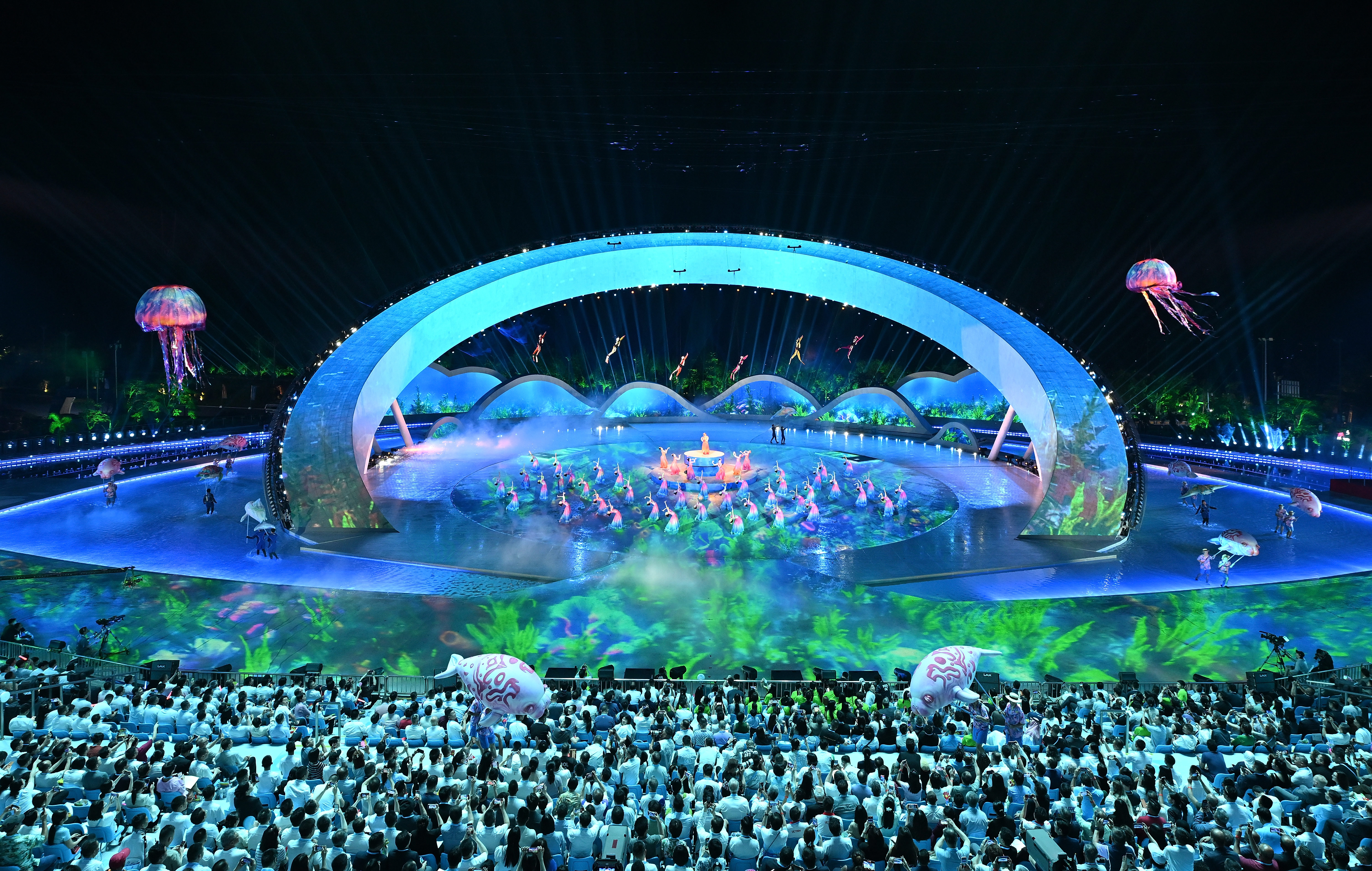 此外,开幕式文艺表演三个篇章均以“海”为核心意象。“每个人心中都有一片海,但全世界人民共享一片海,连接、沟通、跨越是每个人乃至人类的共同需求。”亚沙会开闭幕式总撰稿乔卫说,“海”让人们能够跨越时空,超越种族、语言和文化的界限连接在一起。