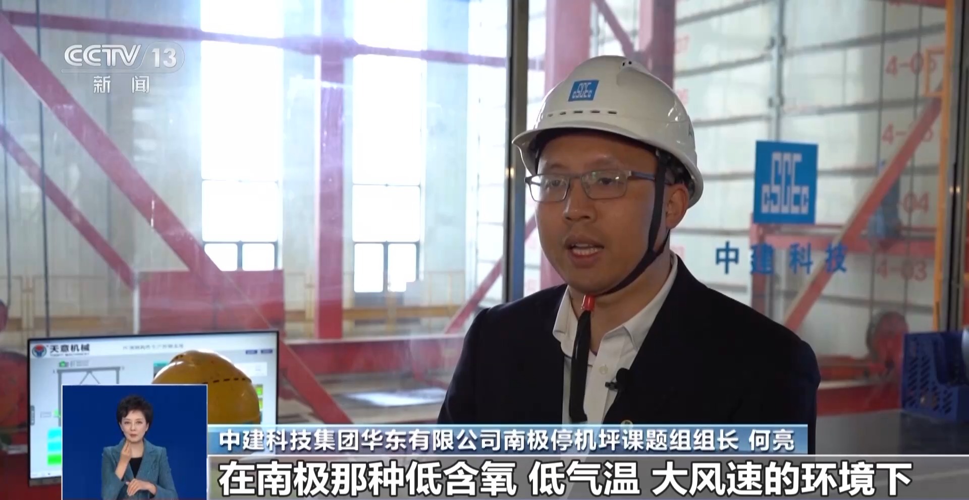 中建科技集团华东有限公司南极停机坪课题组组长 何亮:在南极那种低含氧、低气温、大风速的环境下,如果采取传统的建设模式,施工周期和产品质量无法得到保障。但我们从源头着手,采用可以反复冻融200次以上的高强度混凝土,并将预应力技术应用于我们这个产品的生产制造。