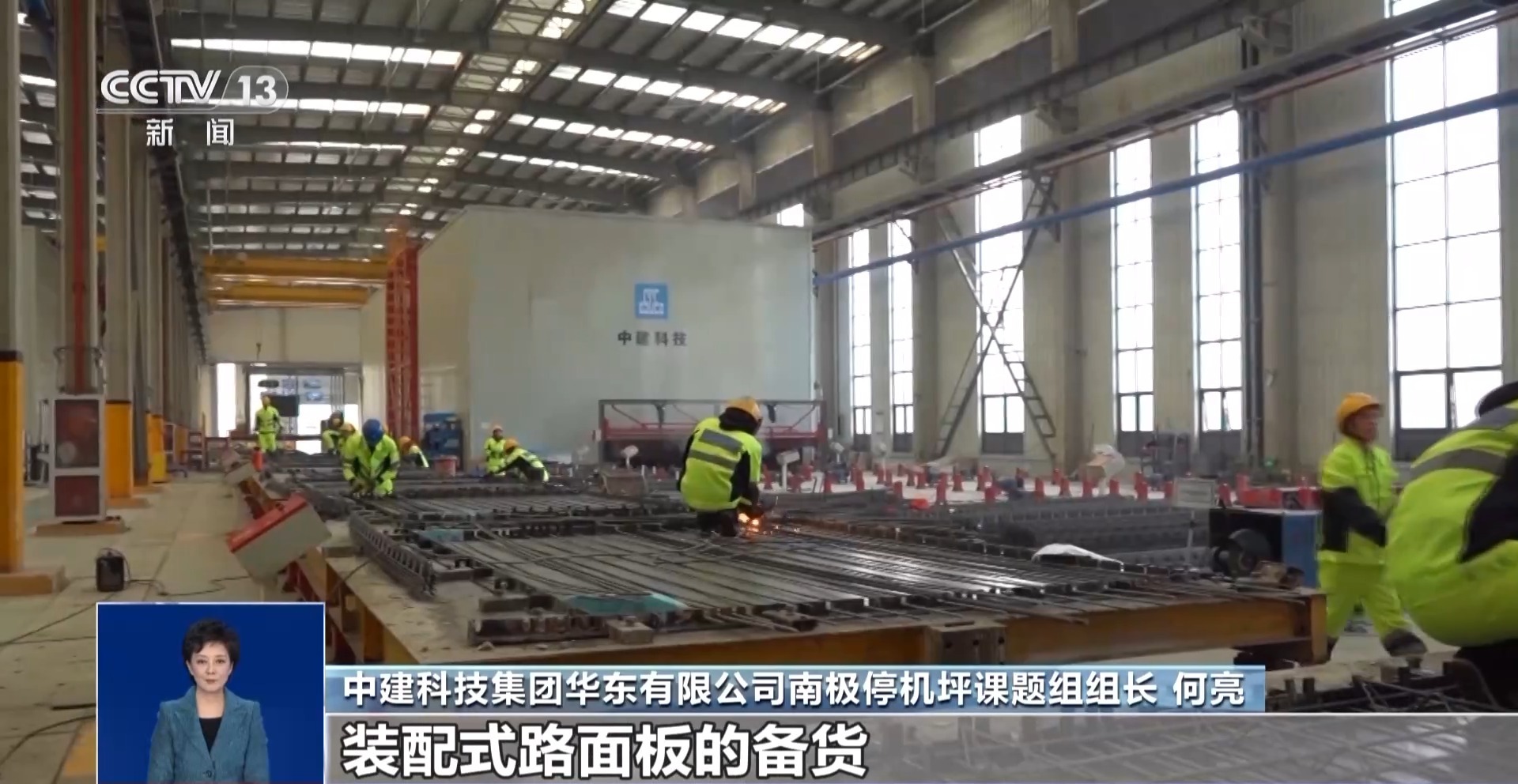 中建科技集团华东有限公司南极停机坪课题组组长 何亮:生产仅仅用了10天,就完成了400余块预应力标准化装配式路面板的备货。