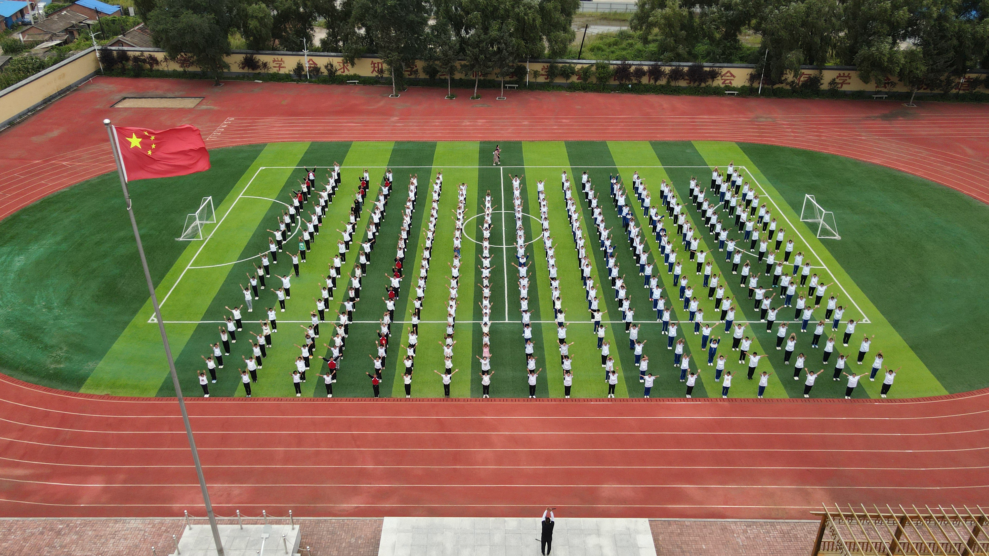 8月21日,舒兰市第三中学校学生在操场上开展大课间活动。石天蛟/摄