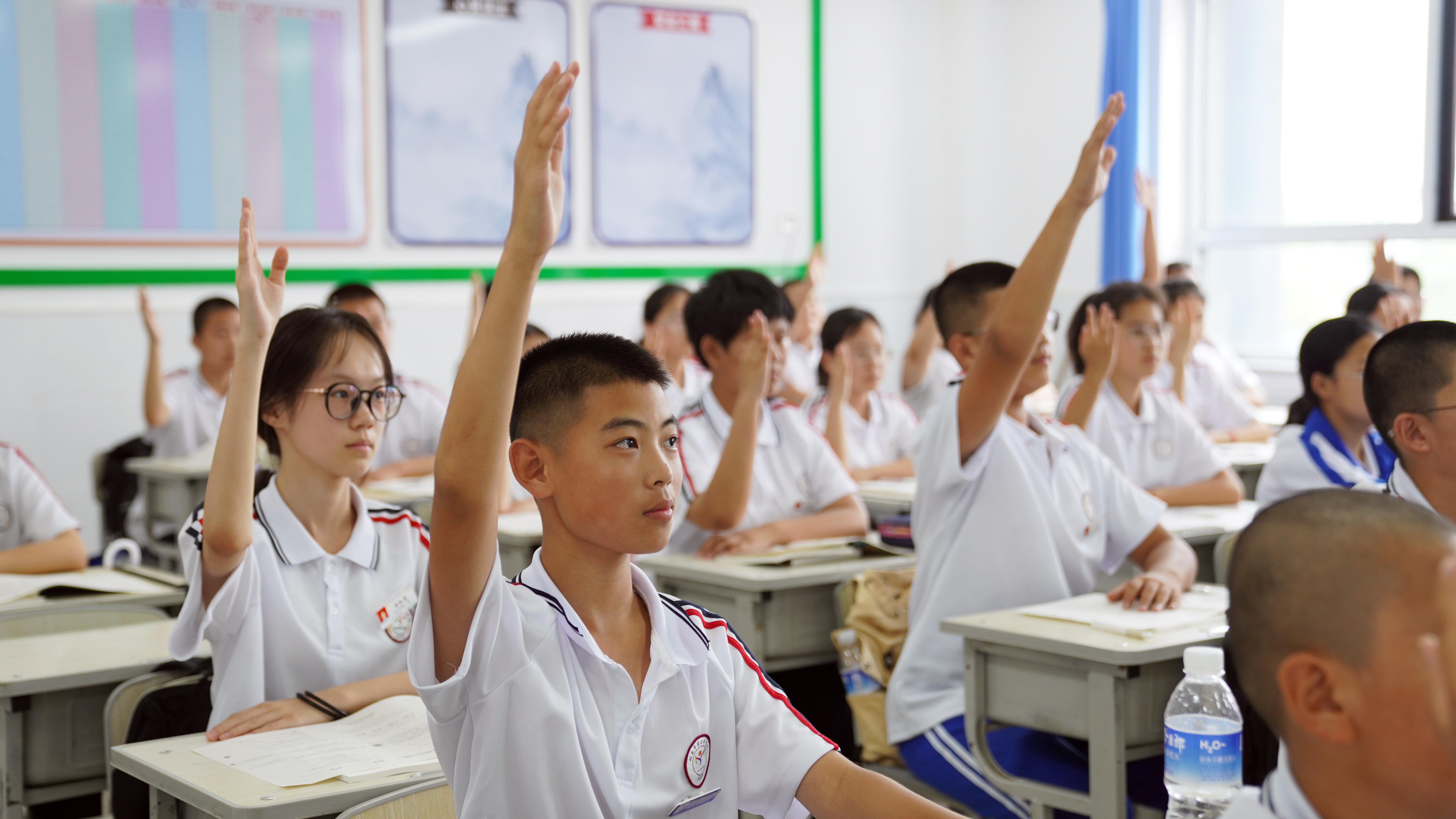 8月21日,舒兰市第三中学校学生在教室内回答老师提问。石天蛟/摄