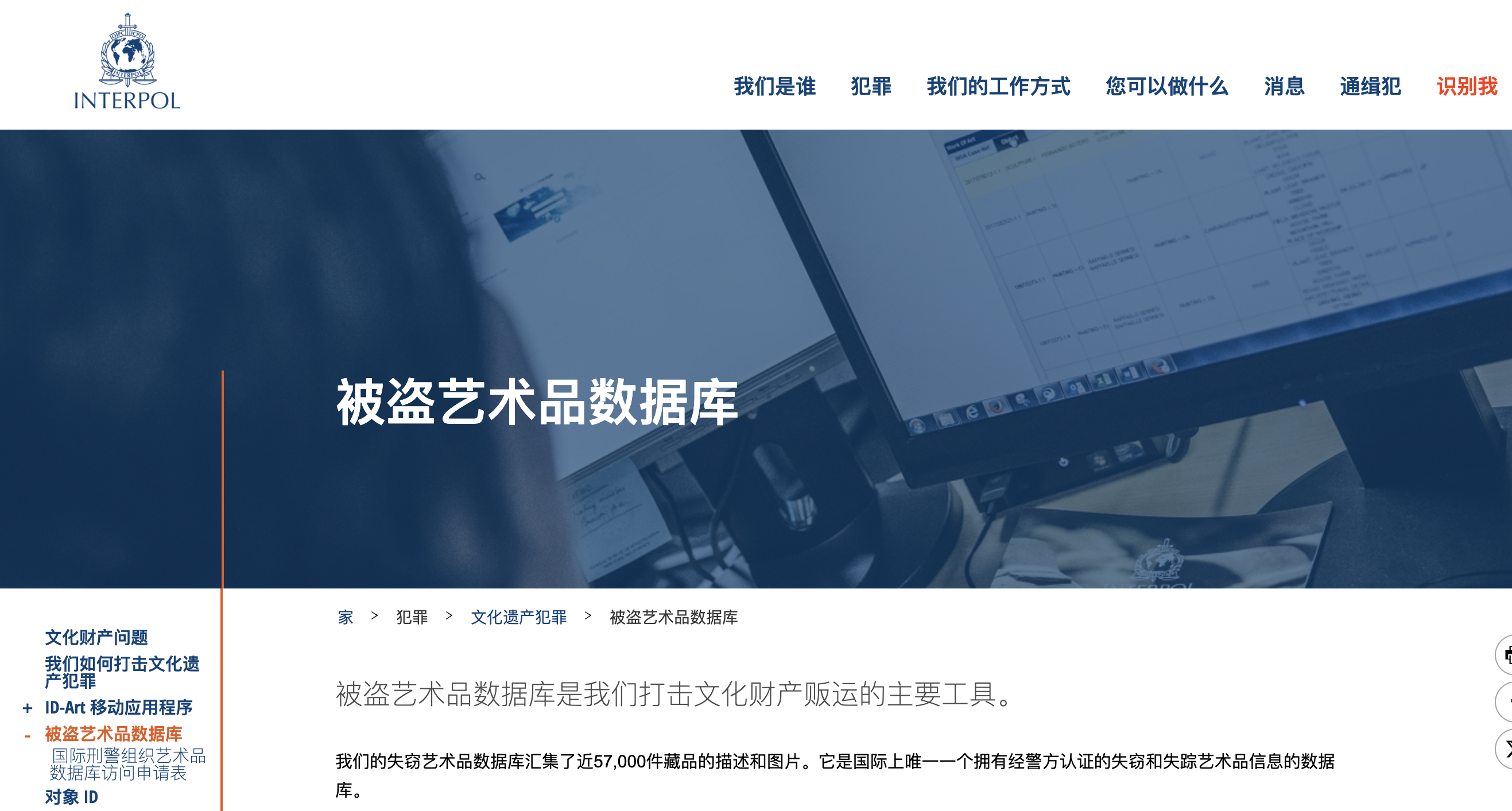 在国际层面,已有多项机制支撑文化遗产追索。国际刑警组织INTERPOL的 “Stolen Works of Art” 数据库截至最新公开数据已收录近57,000件被盗或下落不明的艺术/文化物品,该数据库亦对公众开放其配套移动应用ID‑Art以便快速比对。