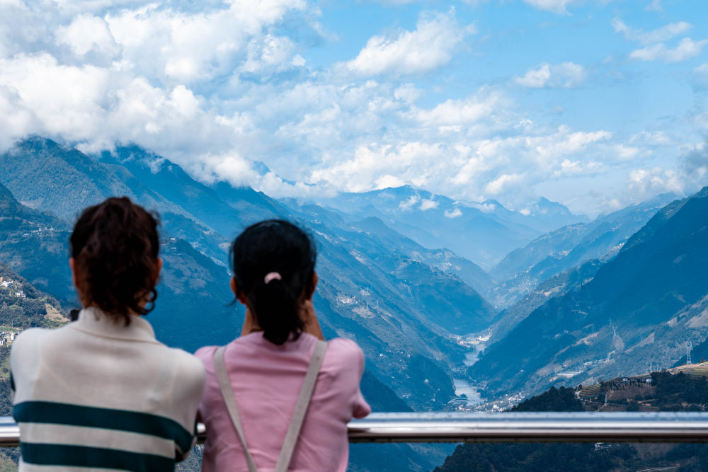 2025年10月20日,游客在云南省福贡县匹河怒族乡老姆登村的观景台拍摄怒江大峡谷风光。新华社记者 胡超 摄