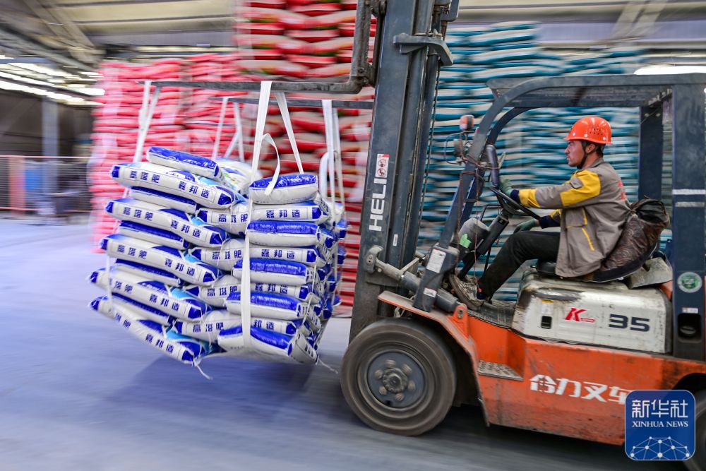 随着气温转暖,新疆春耕生产即将全面展开。连日来,新疆阿克苏市各农资生产企业开足马力加紧生产,切实保障农资市场供应,为今年农业增效、农民增收打好基础。