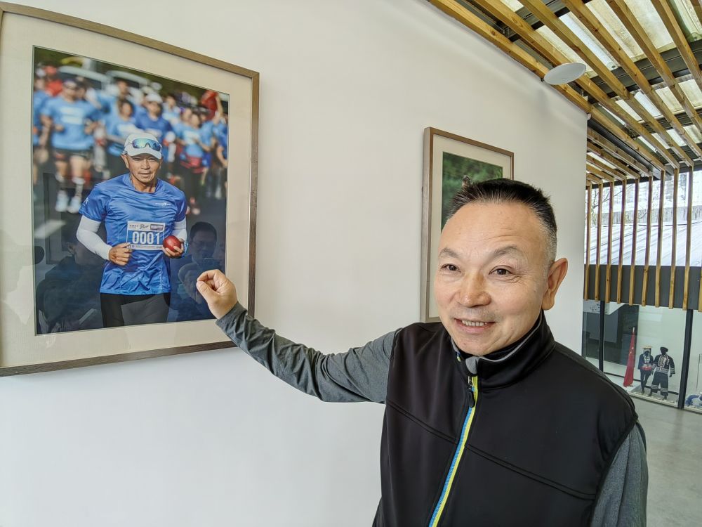 金飞豹讲述他100天跑100个马拉松的故事。新华社记者岳冉冉摄