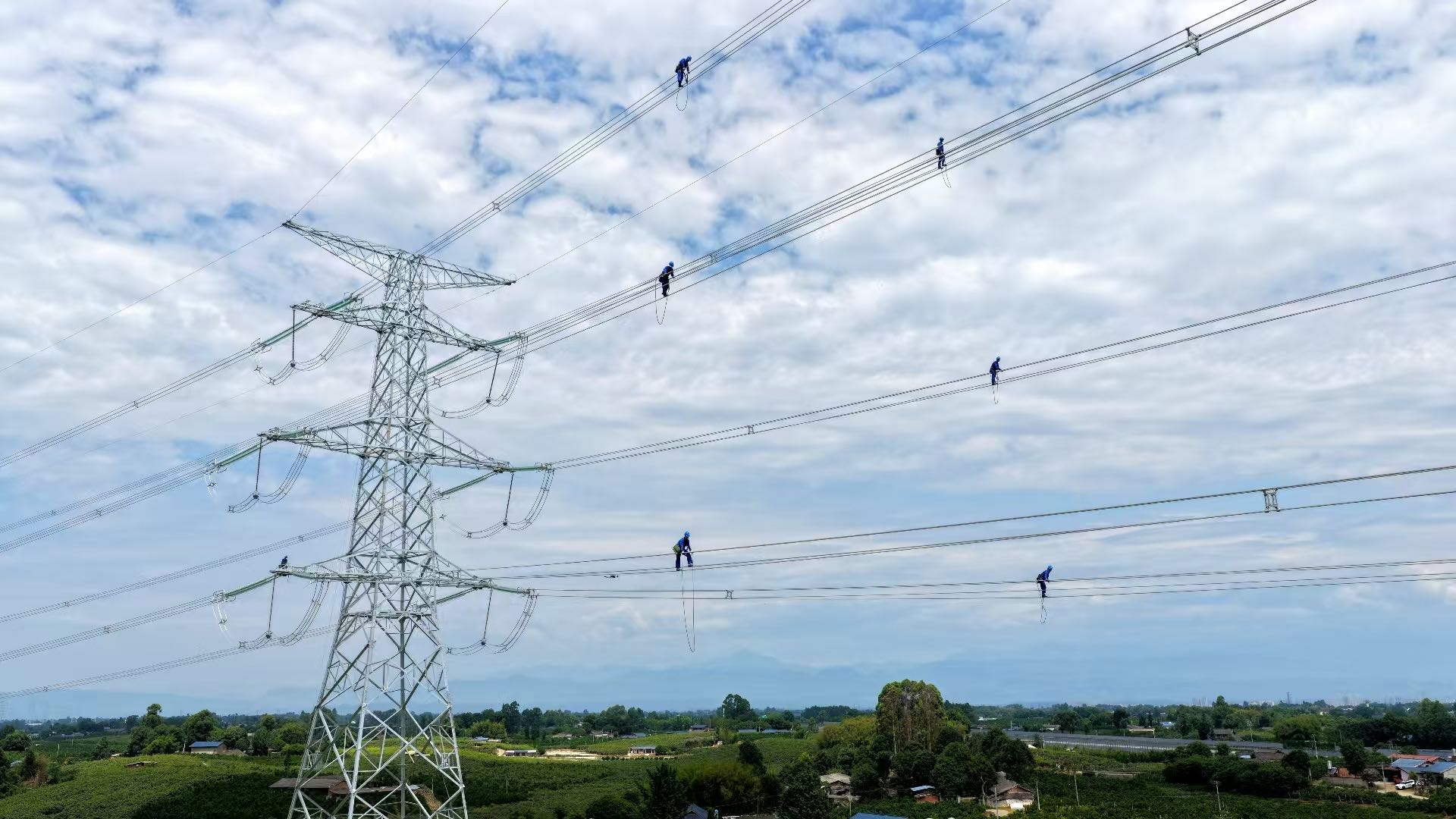 成都邛崃500千伏输变电工程走线验收。(陈翔 摄)