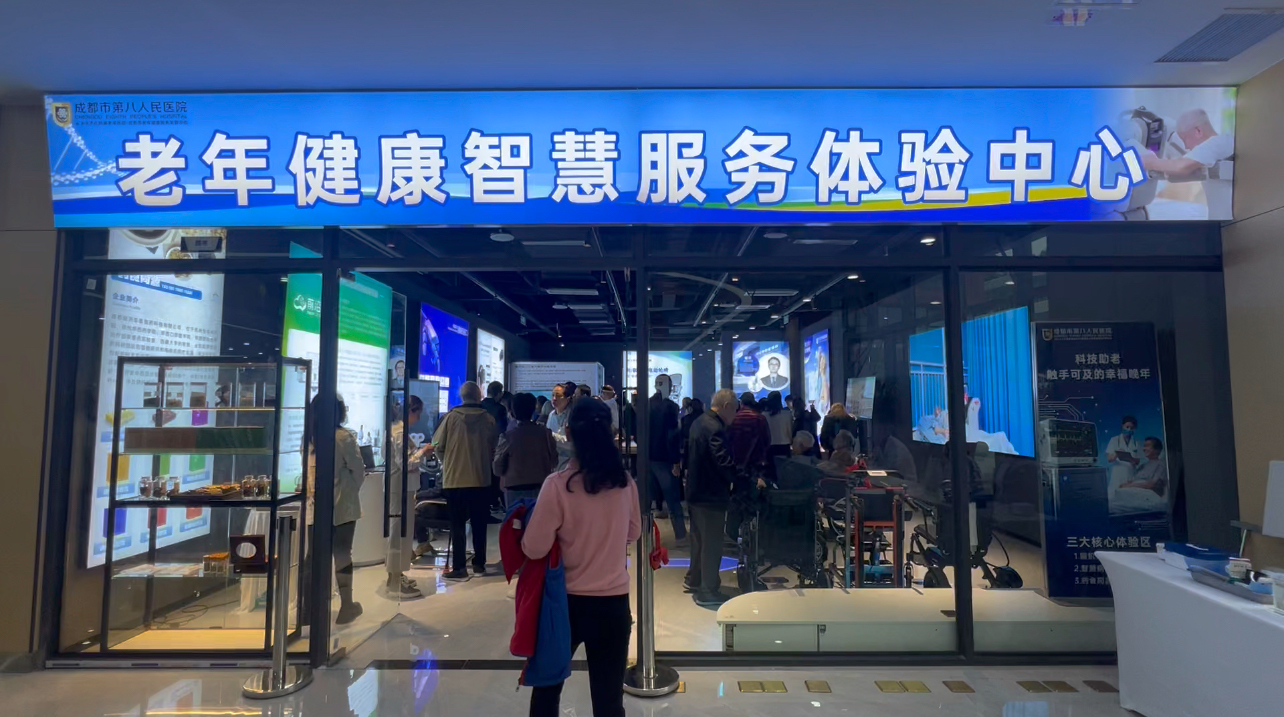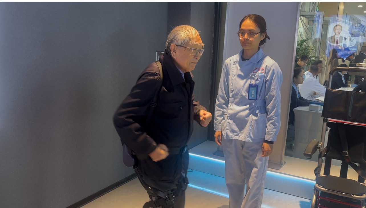 值得一提的是,在医院2号楼一楼大厅,一个充满未来感的空间吸引了众多住院老人驻足体验——这里正是刚刚启用的四川省首个医院内的“老年健康智慧服务体验中心”,在展示区内,老年朋友们体验了外骨骼机器人、脑机接口、智能老年代步车、便携式洗头机等各种智能医养设备,拉进科技产品与老人之间的距离,勾画出智慧医养服务新图景。