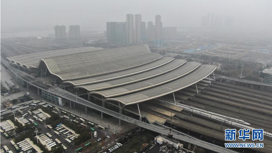 1月23日拍摄的武汉站(无人机照片)。当日,武汉疫情防控指挥部发布1号通告,自23日10时起,机场、火车站离汉通道暂时关闭。 新华社记者 程敏 摄