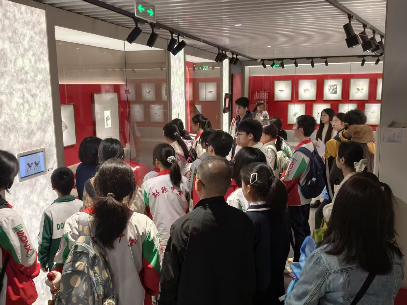 该校学生戴哲昊分享,虽然他此前看过徐悲鸿的作品,但这次在报博馆看徐悲鸿艺术特展,从展品陈设、布展思路、展品内容,他仍感受到了新意,感受到中西文化的交融互鉴。他说:“从徐悲鸿的作品中能窥见早期他在巴黎学习时西方印象派的痕迹。他回国后的作品,又将光影与画马技法交融,我想这就是美美与共吧。”