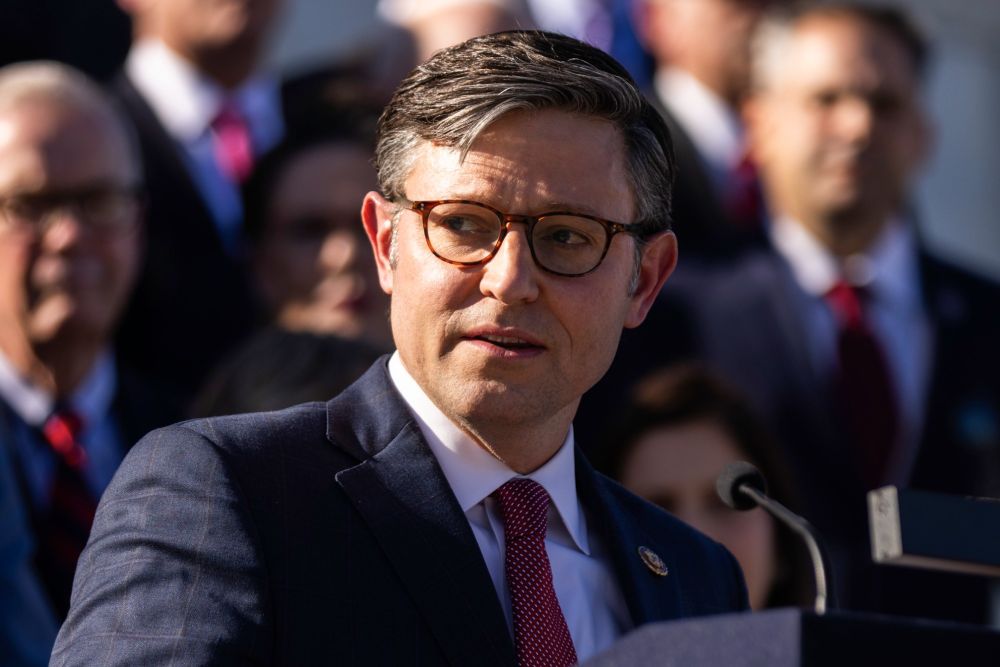 10月25日,在美国华盛顿国会外,新当选的众议院议长迈克·约翰逊发表讲话。新华社发(亚伦摄)
