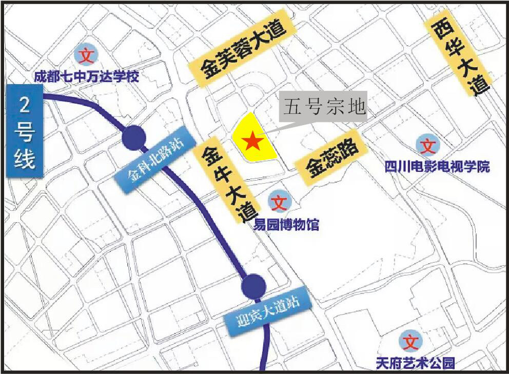 地块位于金牛区国宾板块核心位置,紧邻金牛宾馆和天府艺术公园,周边有金牛区机关三幼天艺分园、七中万达学校、金牛中学、石笋街小学盛达校区等教育资源,整体艺术人文气息浓厚,也是金牛区城市焕新的代表区域。