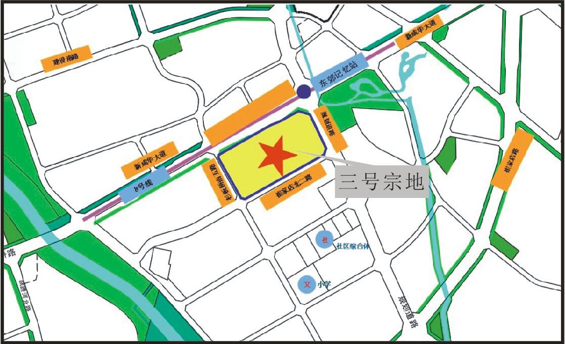 地块位于杉板桥路与杉板桥南五路交汇处,东郊记忆地铁站C口旁,紧邻龙湖滨江天街、万科天荟广场,属于杉板桥的核心位置。伴随区域住宅的整体交付及配套的集中兑现,杉板桥已成为近两年成华区的新晋商圈代表,吸附力强劲。目前区域二手房挂牌均价在2万元/㎡-3万元/㎡之间,新房市场有誉浪东望和凯德玖悦华章在售,都是市场网红热盘。