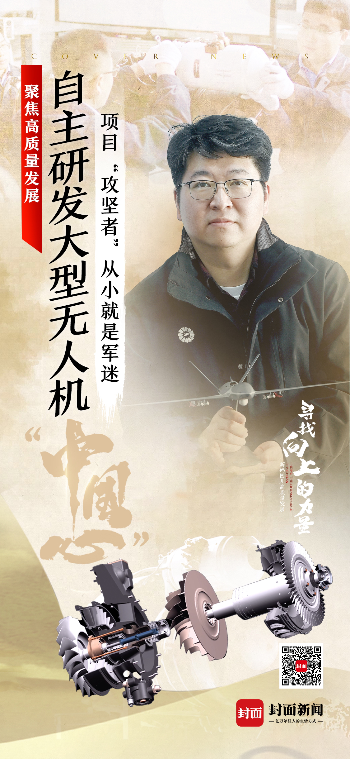 虽然他儿时生活在新疆,却很早就知道航空工业成飞。“我小时候对成飞的印象非常深刻,一是它研发JF-17‘枭龙’,另一个则是歼10,它是一个非常有创新精神的企业,是真正通过航空体系建设出来的中国人自己的骄傲。”那时候,他没想到,以后的自己会来到成都工作,与成飞近在咫尺,还能为成飞制造的某款大型无人机提供动力“心脏”。