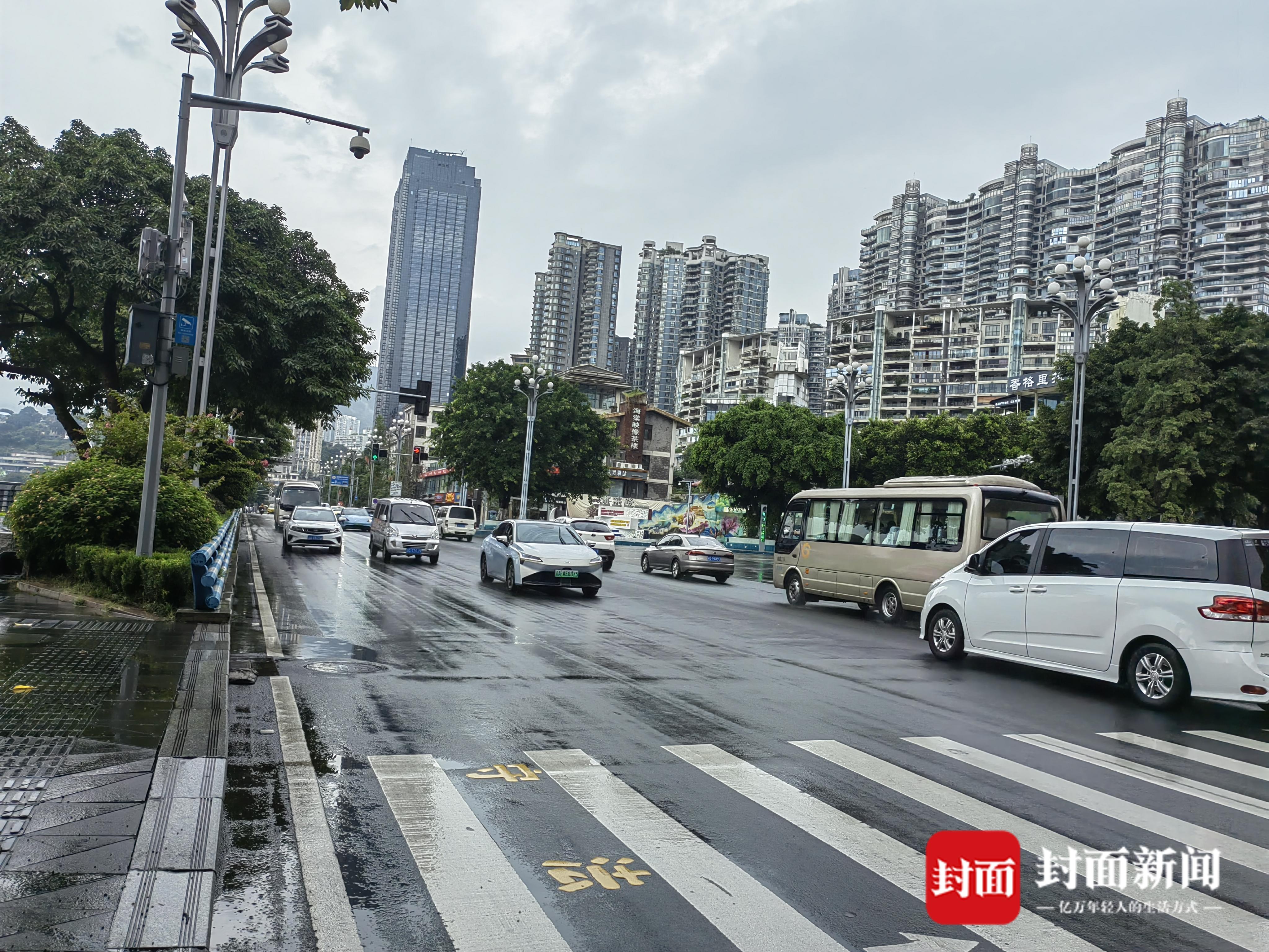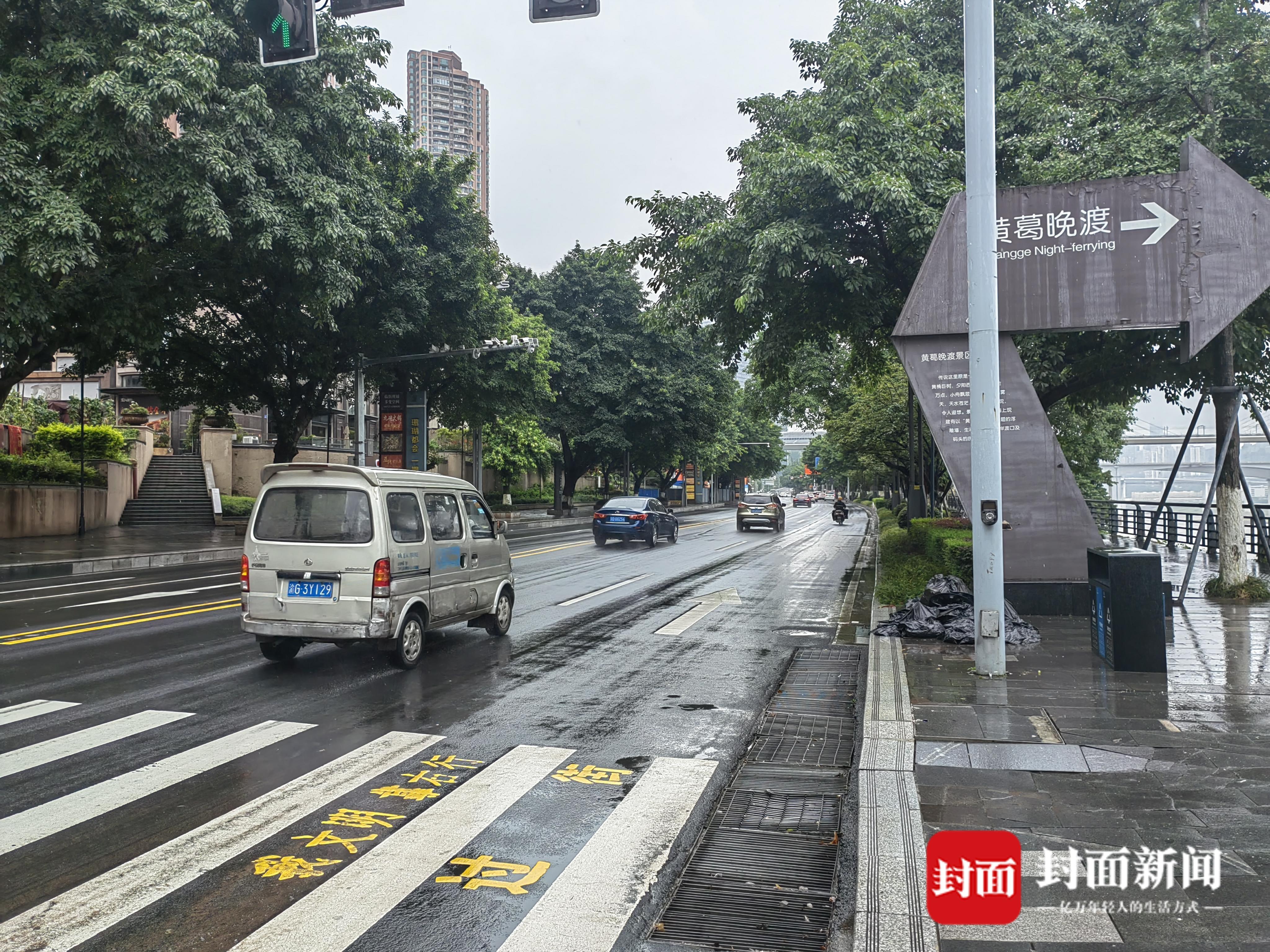 21日早上,南岸区的南滨路也遭遇暴雨,出现雨水灌入公路干道,形成“河流”的情况,钟楼、黄葛晚渡景点一带再次发生被雨水淹没,交通中断的景象。下午4时,封面新闻记者在黄葛晚渡景点附近看到,公路上的积水也已经完全退去,交通已经恢复到正常状态,车辆、路人通行都很顺利。