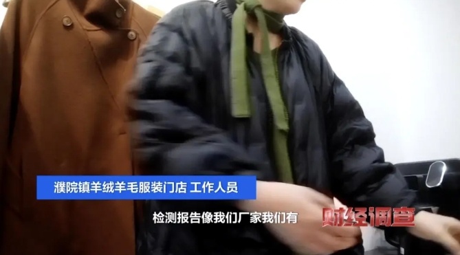 秦经理继续向记者透露,由于消费者没有鉴别能力,更不会将服装去送检,所以商户就虚标羊绒含量,用羊毛产品冒充羊绒产品销售。