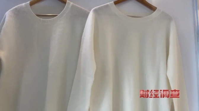 而这些羊绒含量远低于95%的产品,就这样被堂而皇之地悬挂在门店里。经销商罔顾产品的真实成分,随心所欲地对羊绒成分进行虚假标注,仅仅为了降低成本、抬高售价,获取高额利润。如此一来,大量标注着与实际成分严重不符的羊绒衫源源不断地流入市场。