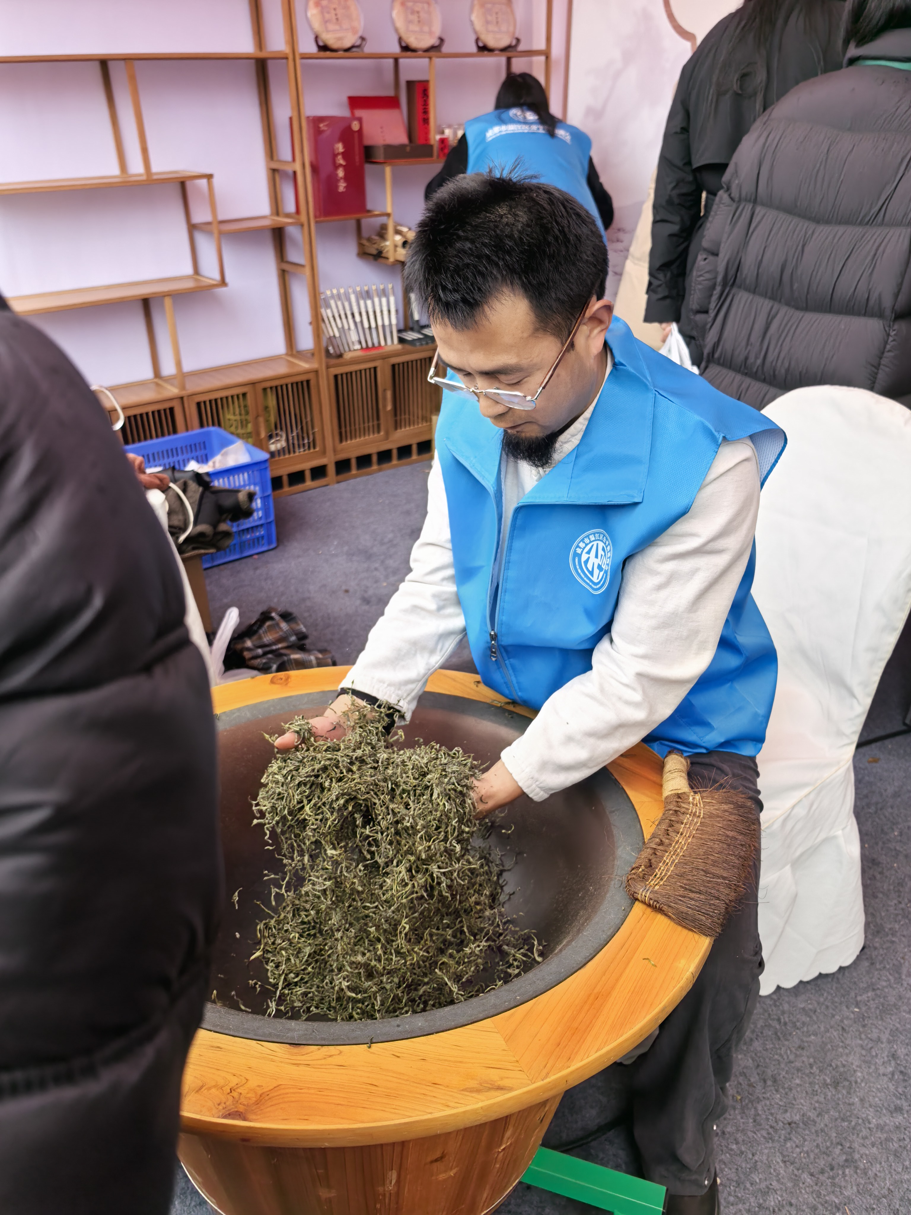 现场,非遗炒茶摊位。