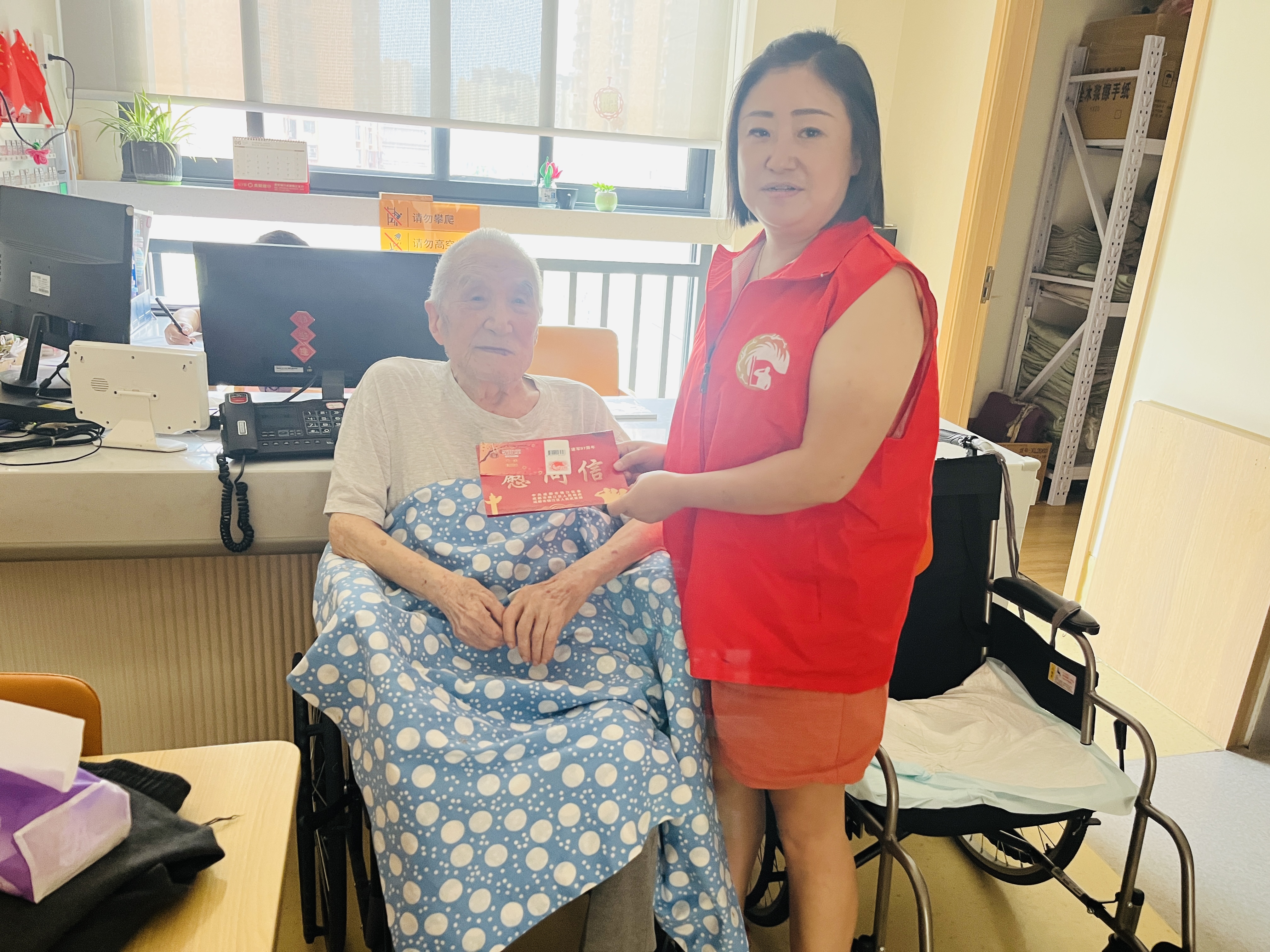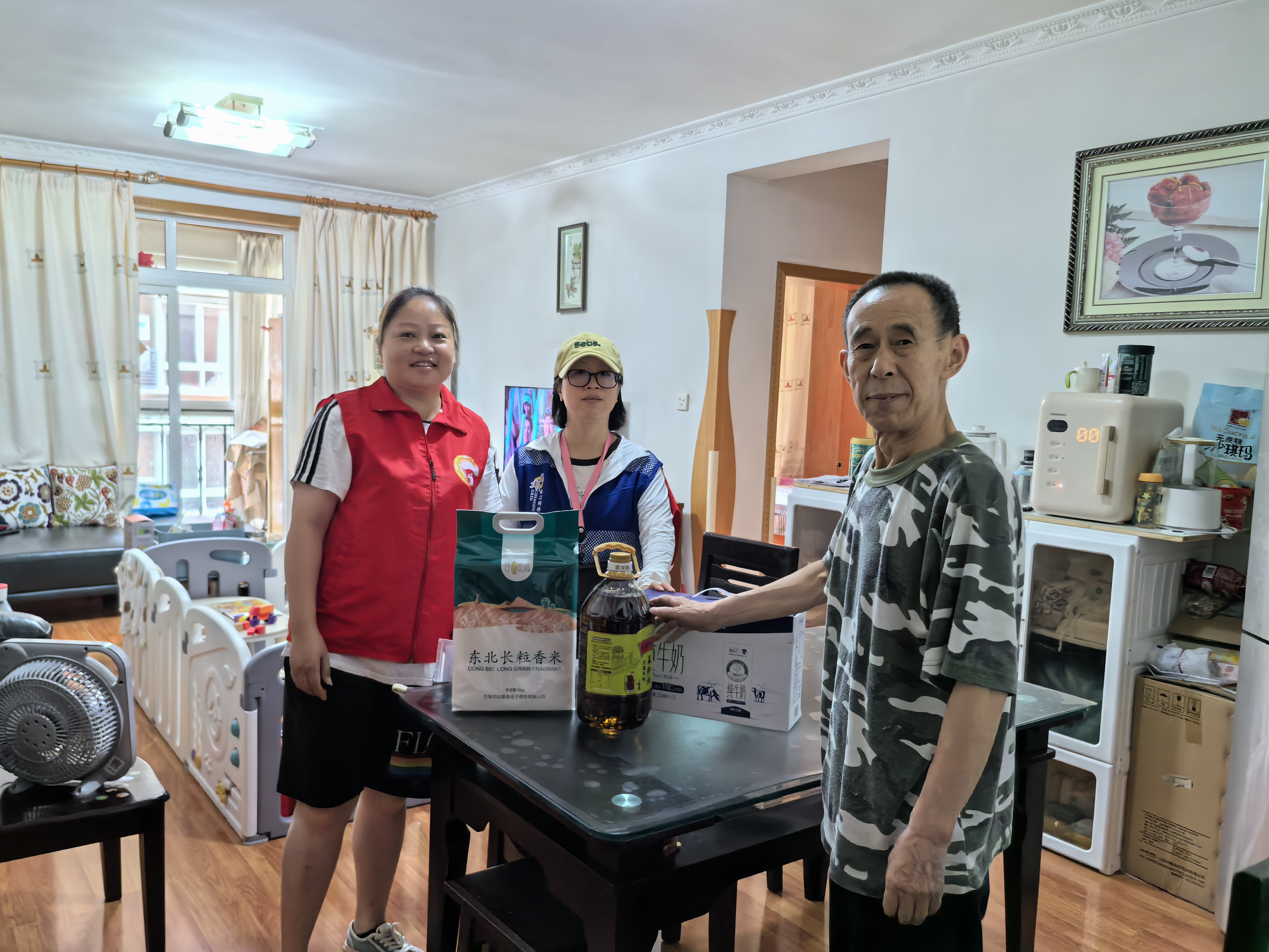 在80岁的退役军人汤家华家,慰问小组详细了解他和爱人的健康状况和生活需求,与他们聊家常、谈过往,认真聆听老人讲述往事,共同回忆峥嵘岁月,分享当下美好生活。在走访慰问中,街道和社区服务站的慰问小组每到一户都与退役老兵们亲切交流,并向他们送上慰问信以及米、油、牛奶等慰问品。