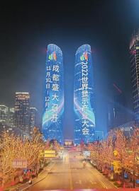 成都金融城双子塔上的华美灯光秀,从一个侧面映射出成都显示产业波澜壮阔的发展画卷。 成都高新文创传媒有限公司供图