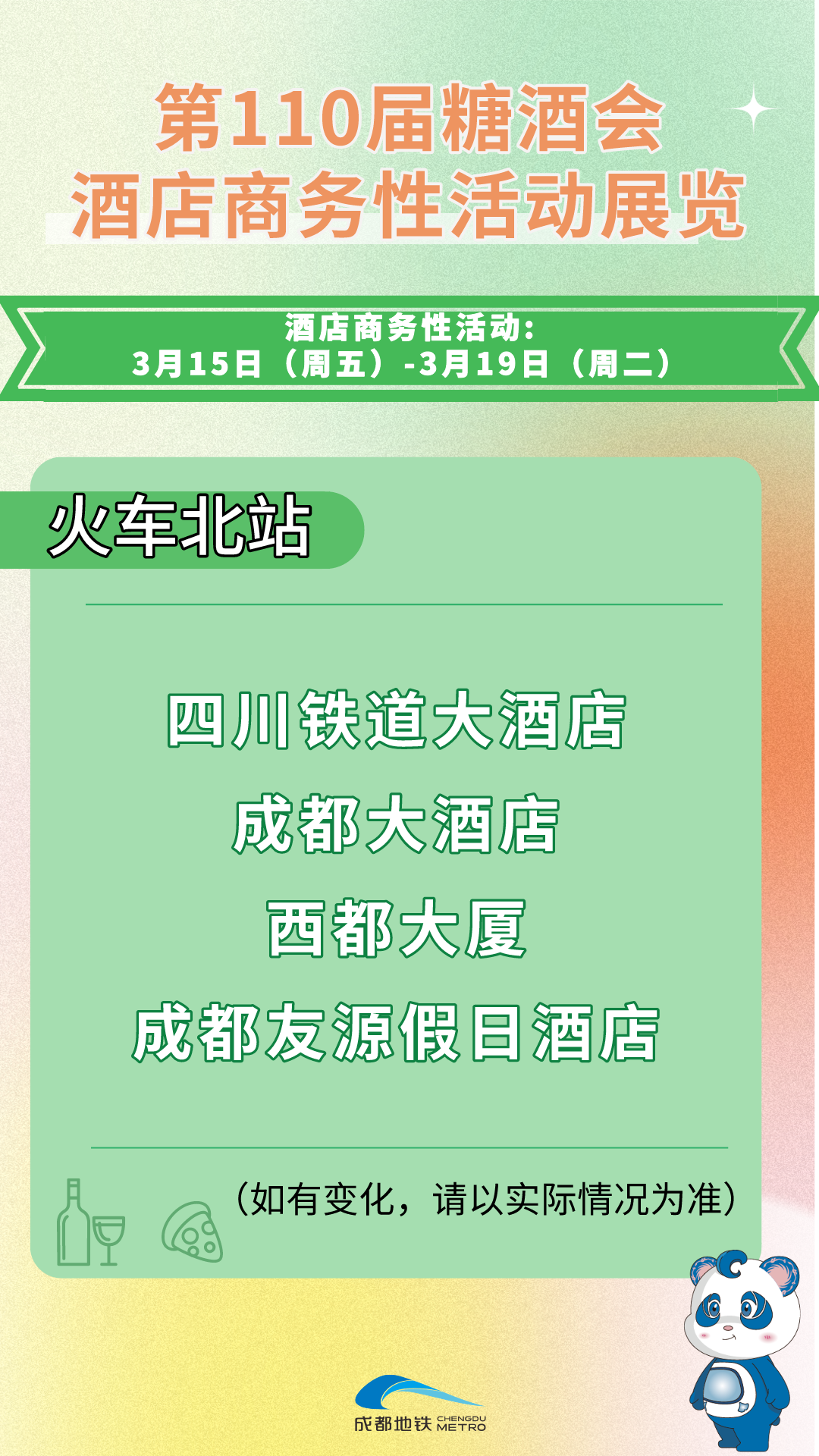 ①火车北站:火车北路站周边酒店,主要展销饮品、食品和调料类,乘坐地铁1号线、7号线到站后根据站内指引从C、F口出站过街后即可。
