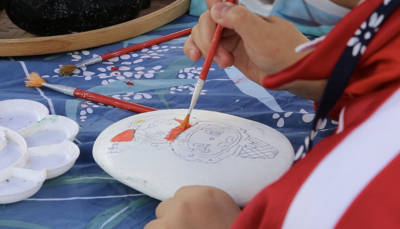 5月16日,四川资中凤凰岭下,水南实验学校传来朗朗书声,一群五年级的学生正在练习资中非物质文化遗产——盘破门,他们身手矫健,拳脚并用,在绿茵场上虎虎生风。不远处,几名同学正专心致志在鹅卵石上绘画,一块块从河边捡来的大小不一的鹅卵石,通过学生们的绘画、上色,仿佛被赋予了新的生命。