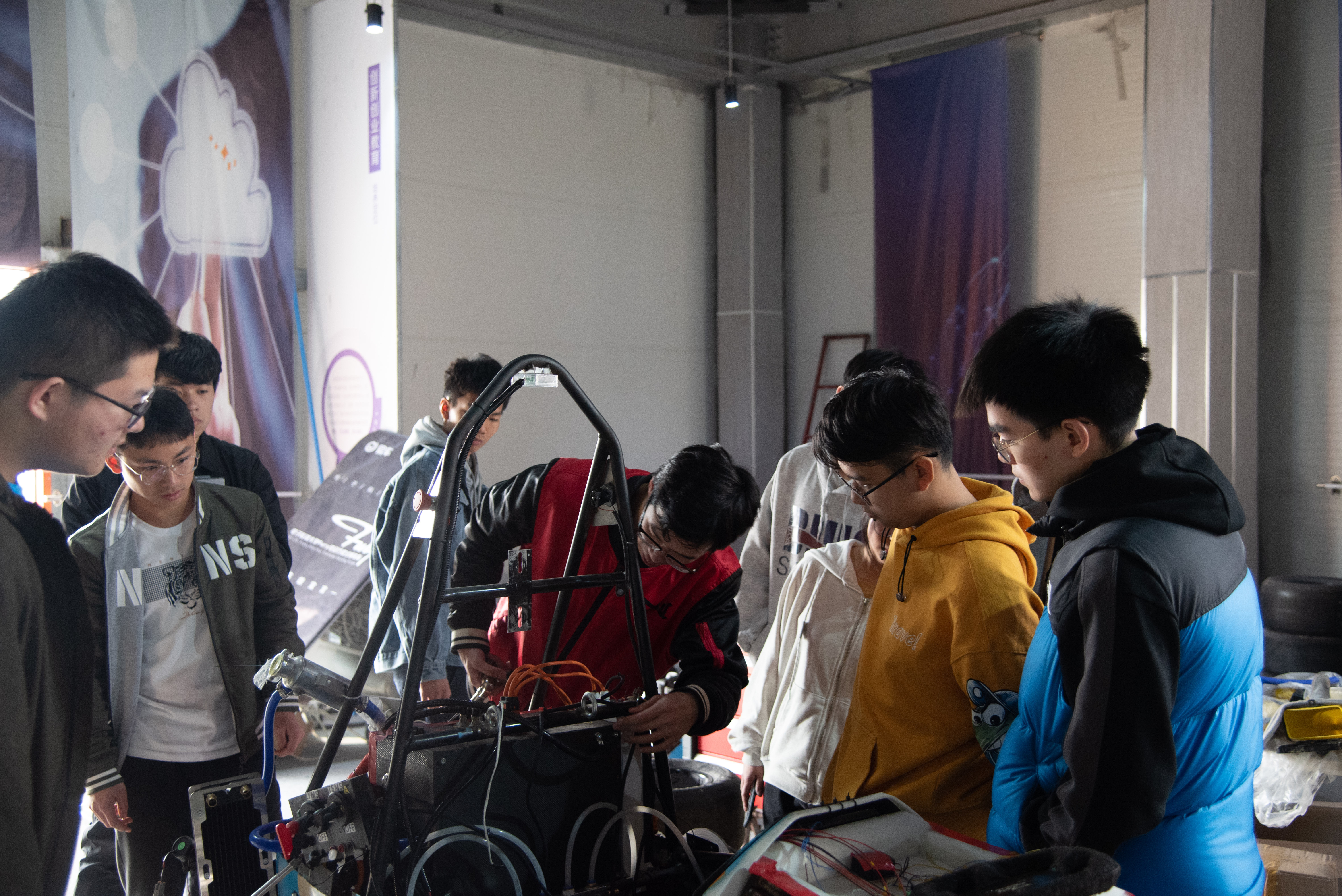 时间来到2018年,为了能在这年参加到FSEC比赛,车队几个小组每隔两三个小时就轮换一班,他们一组一组轮换着干活,从零件、车身再到电路……每一个部分都需要他们自主设计,在不断的调试中,车队成员常常工作到半夜。