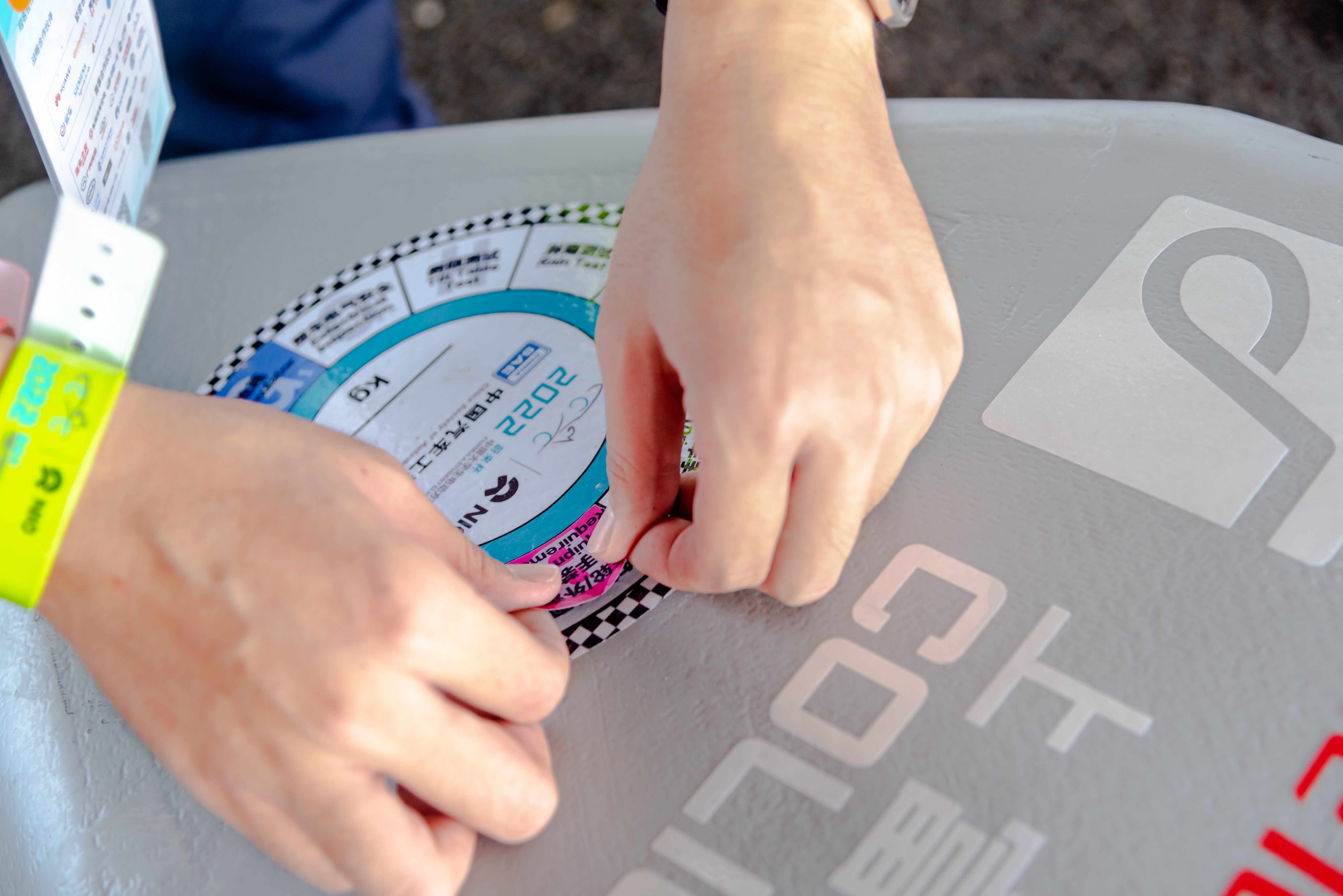 当圆圈标签贴满后,意味着赛车通过车检