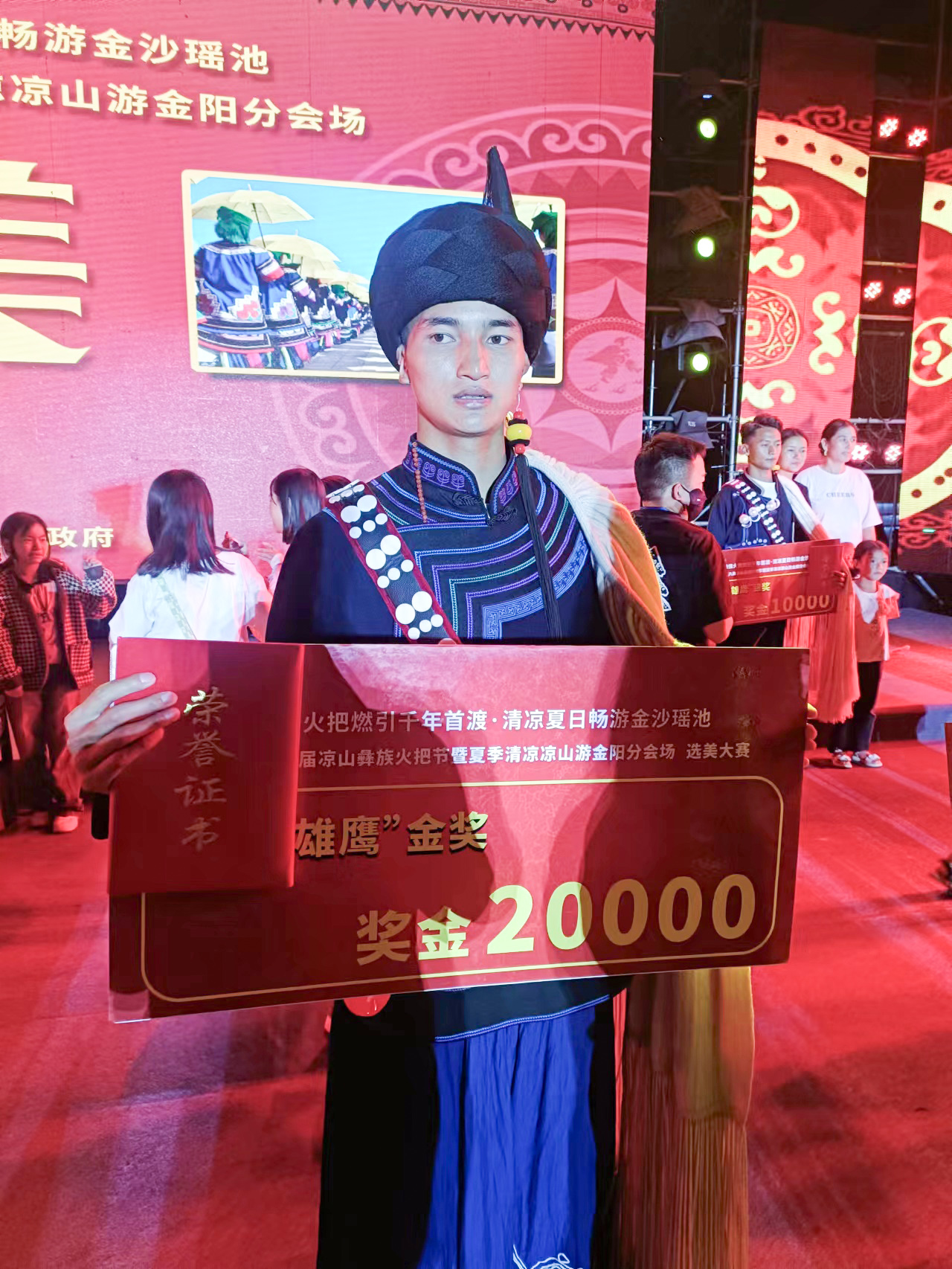 “非常荣幸和开心能够获得此次奖项,也很感谢主办方能给我们一个展示自己的机会,谢谢我的亲朋好友们对我的支持和认可,我会继续努力传承民族文化。”“阳光玛薇”金奖获得者阿苦依作说。