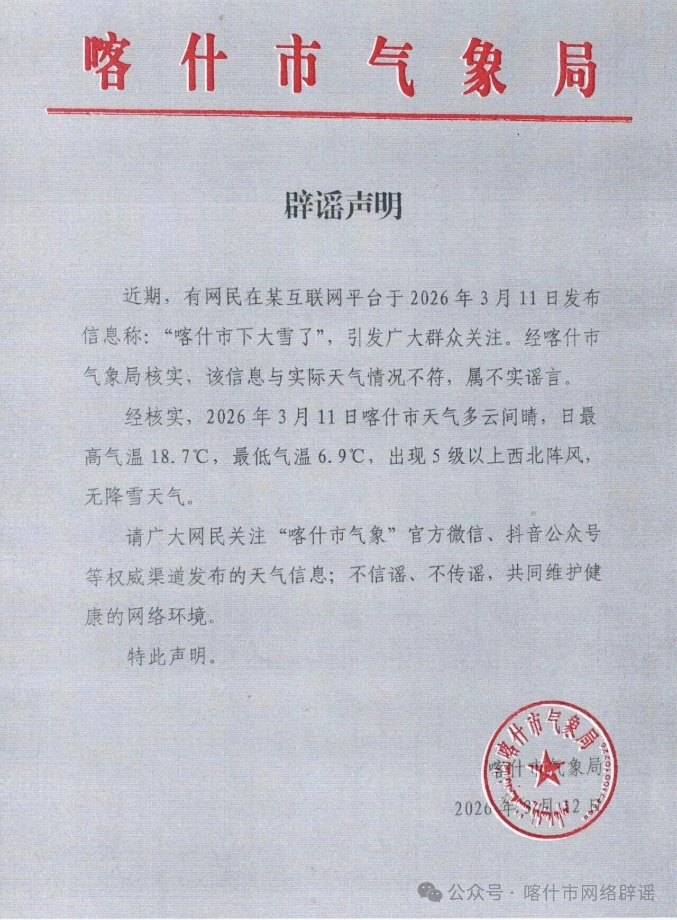 “喀什市网络辟谣”微信公众号 2026-03-15 18:28 63968