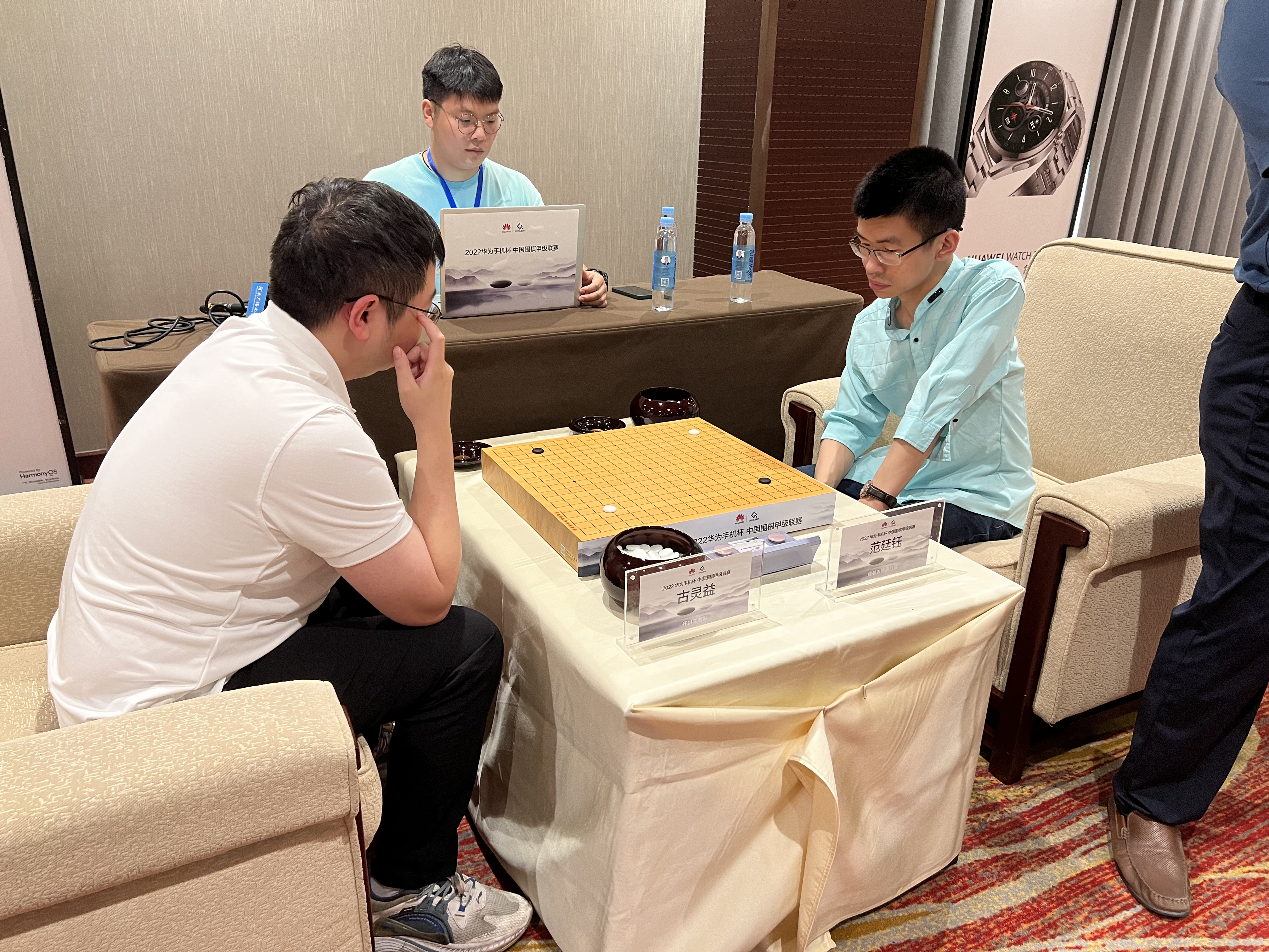 今天四台比赛的结果为:一台党毅飞胜曹潇阳,二台主将战范廷钰胜古灵益,三台快棋赛廖元赫胜刘兆哲,四台屠晓宇胜王世一。古灵益是成都围棋多年的主力,本赛季转会到了开封奕教队,表现良好。