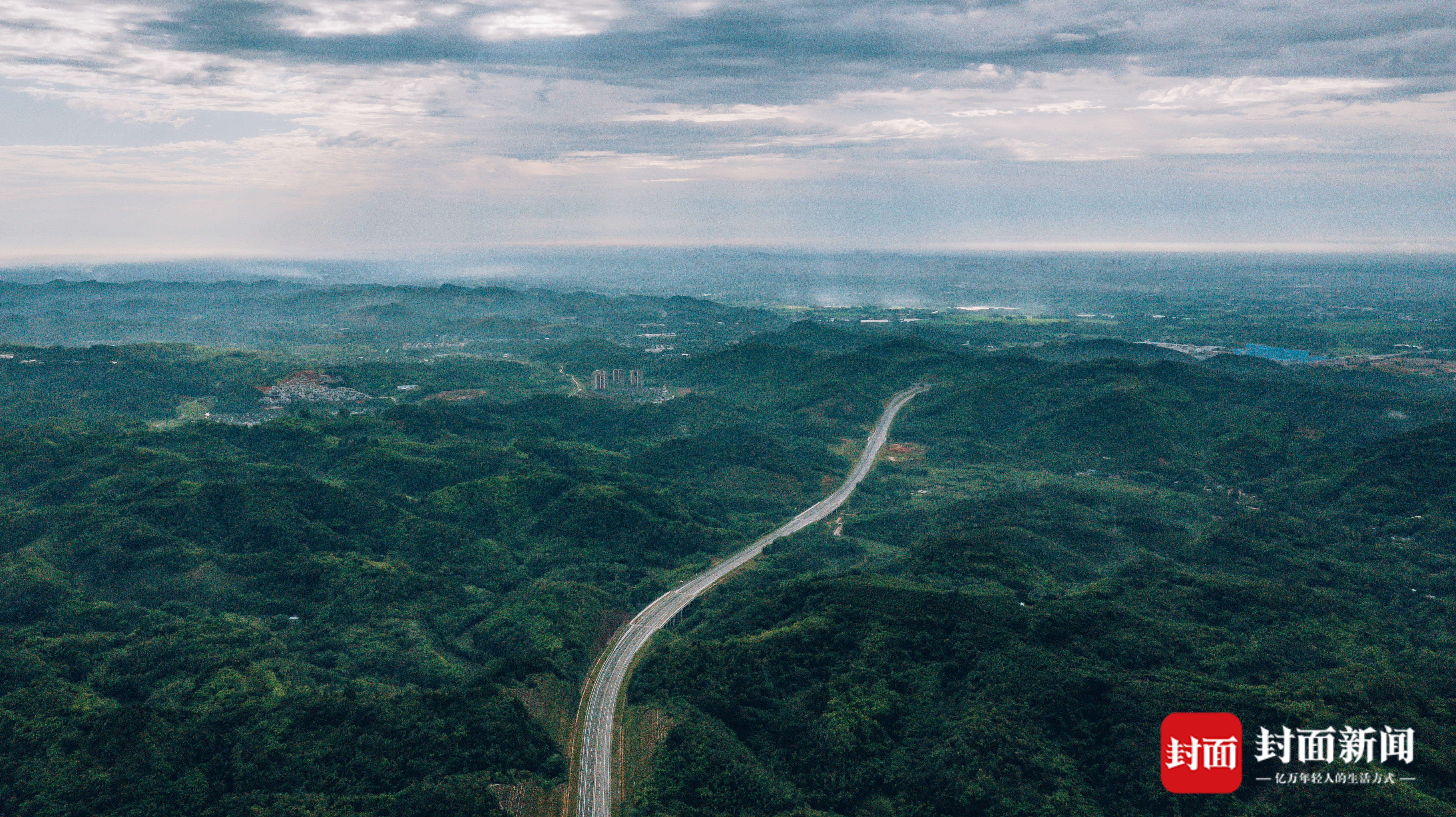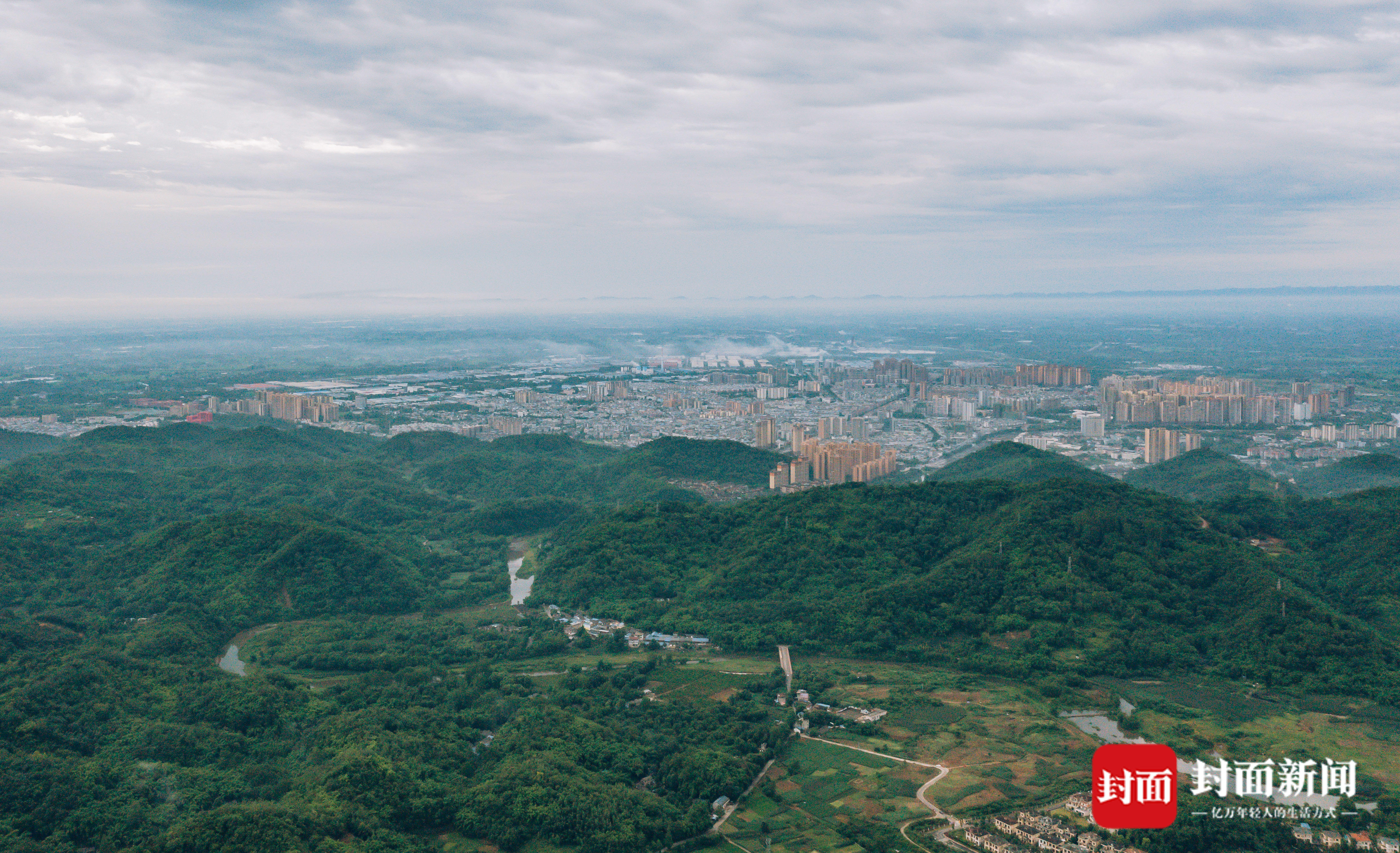 2024年7月1日,成都市大邑县,从北二环路上眺望大邑城区和成都平原。