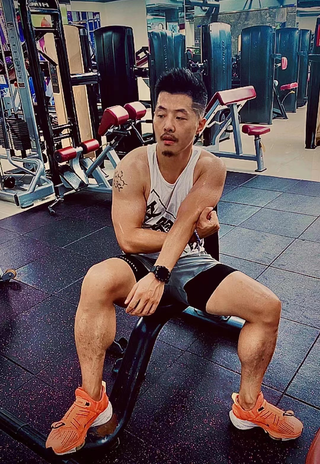 POLO衫上印着6个字:“为国家,勤锻炼”。田肖和说,他每天都要健身2个小时,强壮的体魄让不熟悉他的人常误以为他是健身教练。