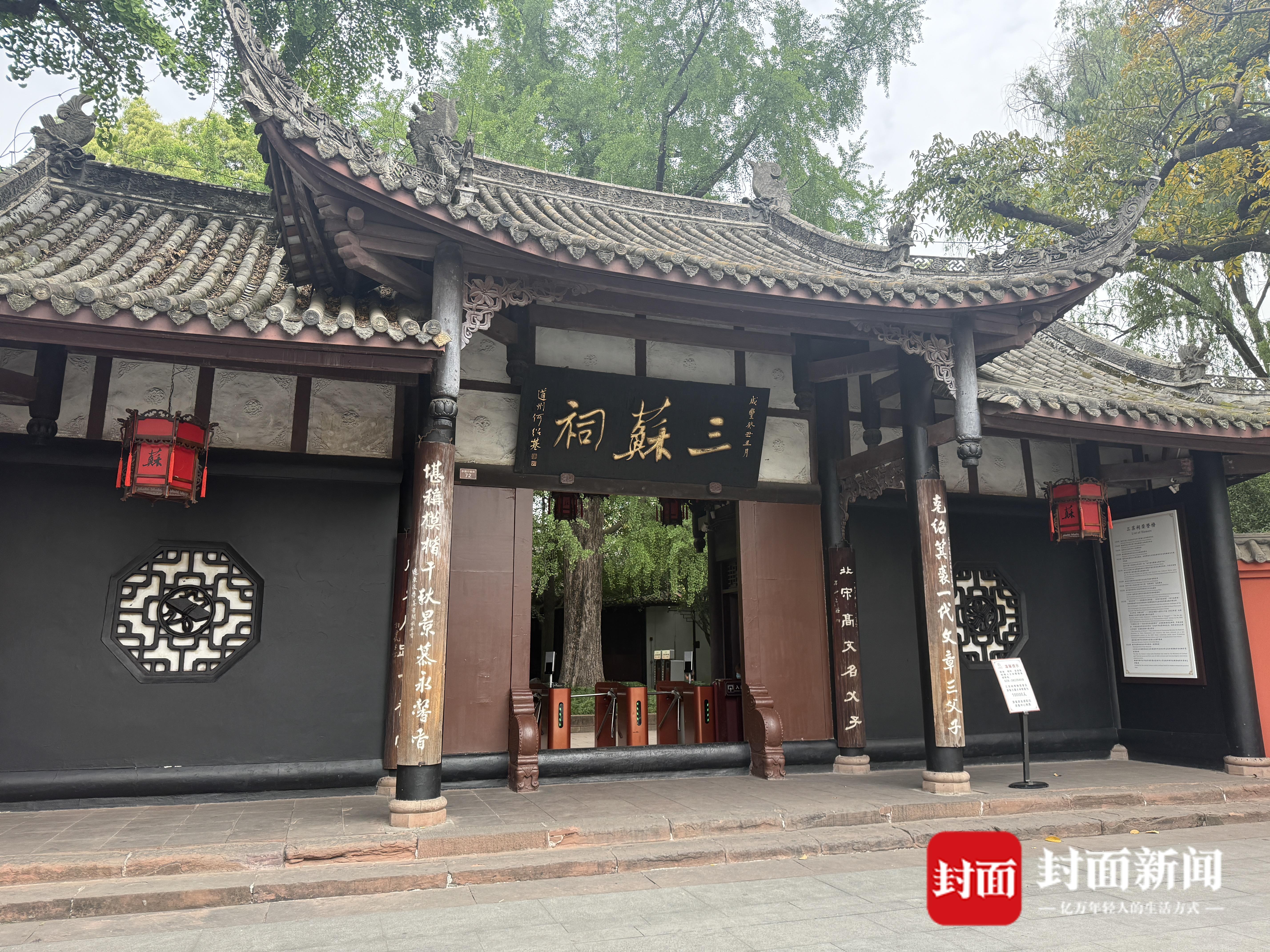 正午时分,阳光打在三苏祠博物馆的牌匾上,天南地北的游客穿过大门踏入三苏的世界,馆内,绿草青青,古树成荫。