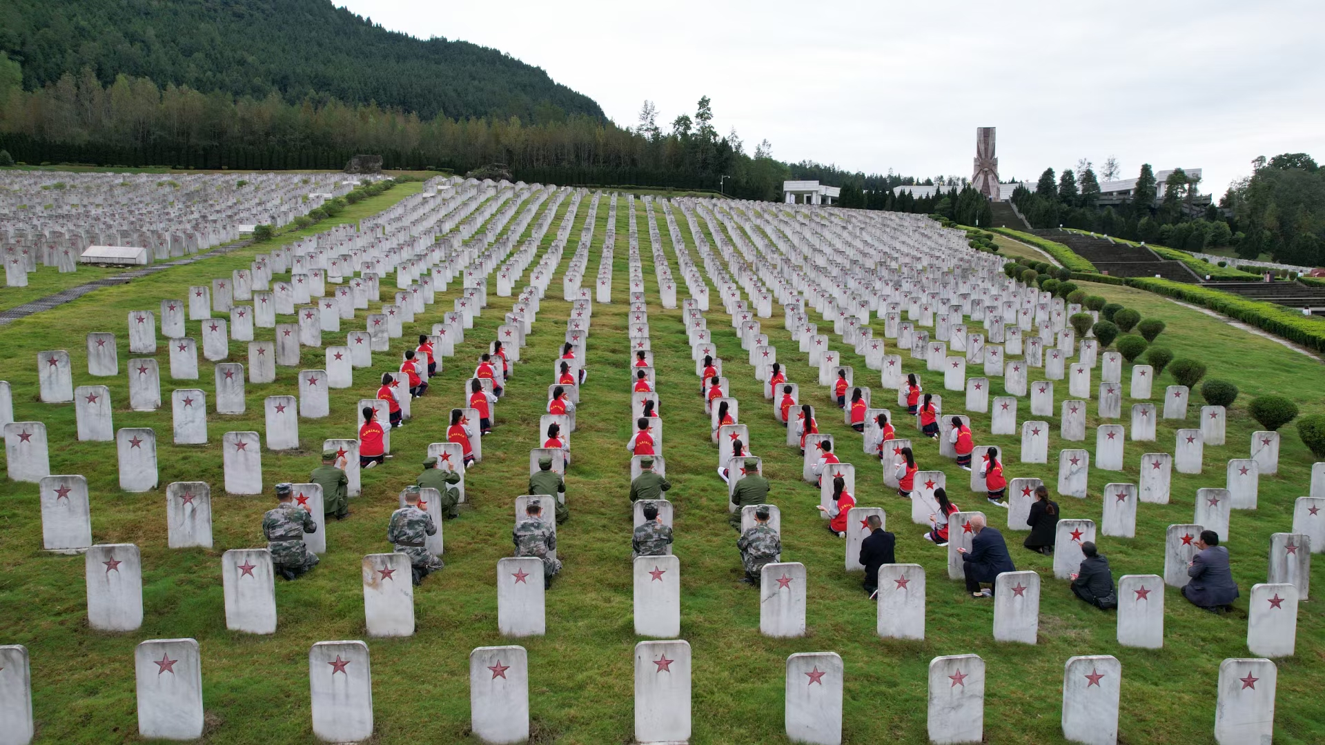 川陕革命根据地红军烈士陵园是全国安葬红军烈士最多、规模最大的红军烈士陵园。这里长眠着25048位红军烈士,其中无名烈士17225位。通江县李先念红军小学48名少先队员,在川陕革命根据地红军烈士陵园无名烈士纪念园里,为无名烈士纪念碑上的红五星描红。
