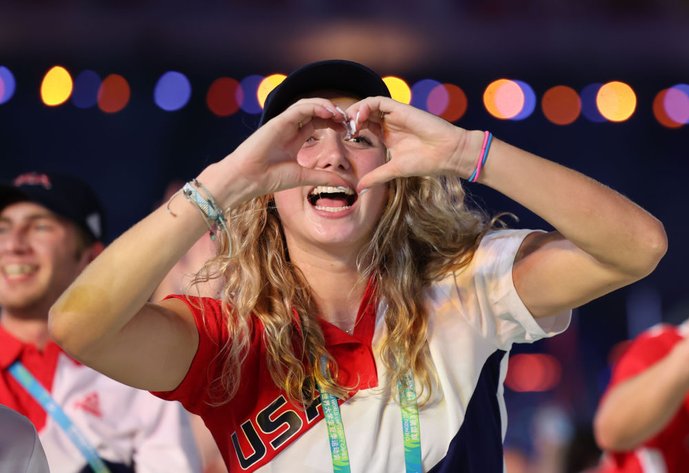7月28日,美国大学生体育代表团在开幕式上入场。新华社记者 杨青 摄