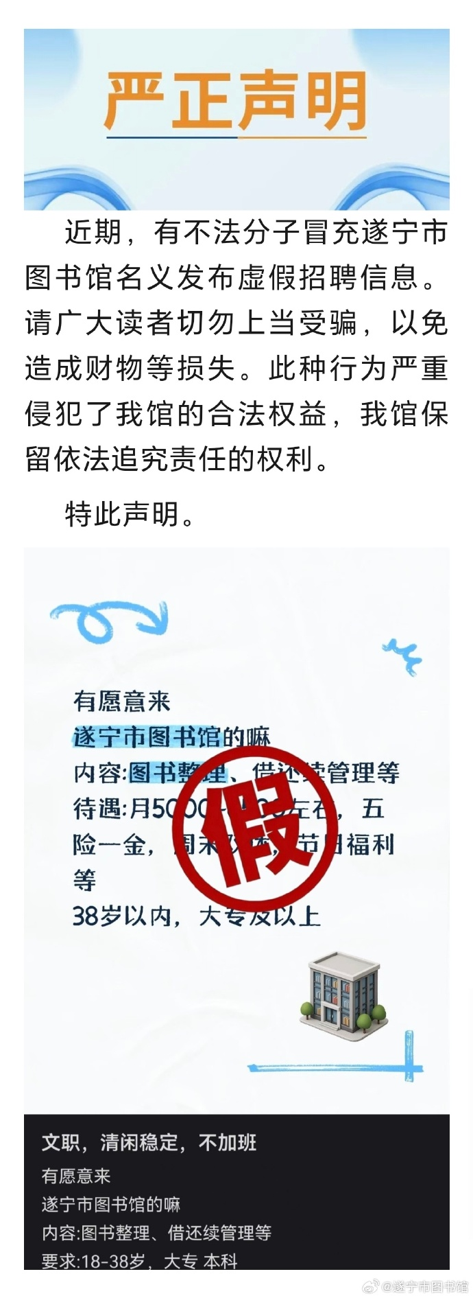 详情:2026年3月25日,遂宁市图书馆发布严正声明: