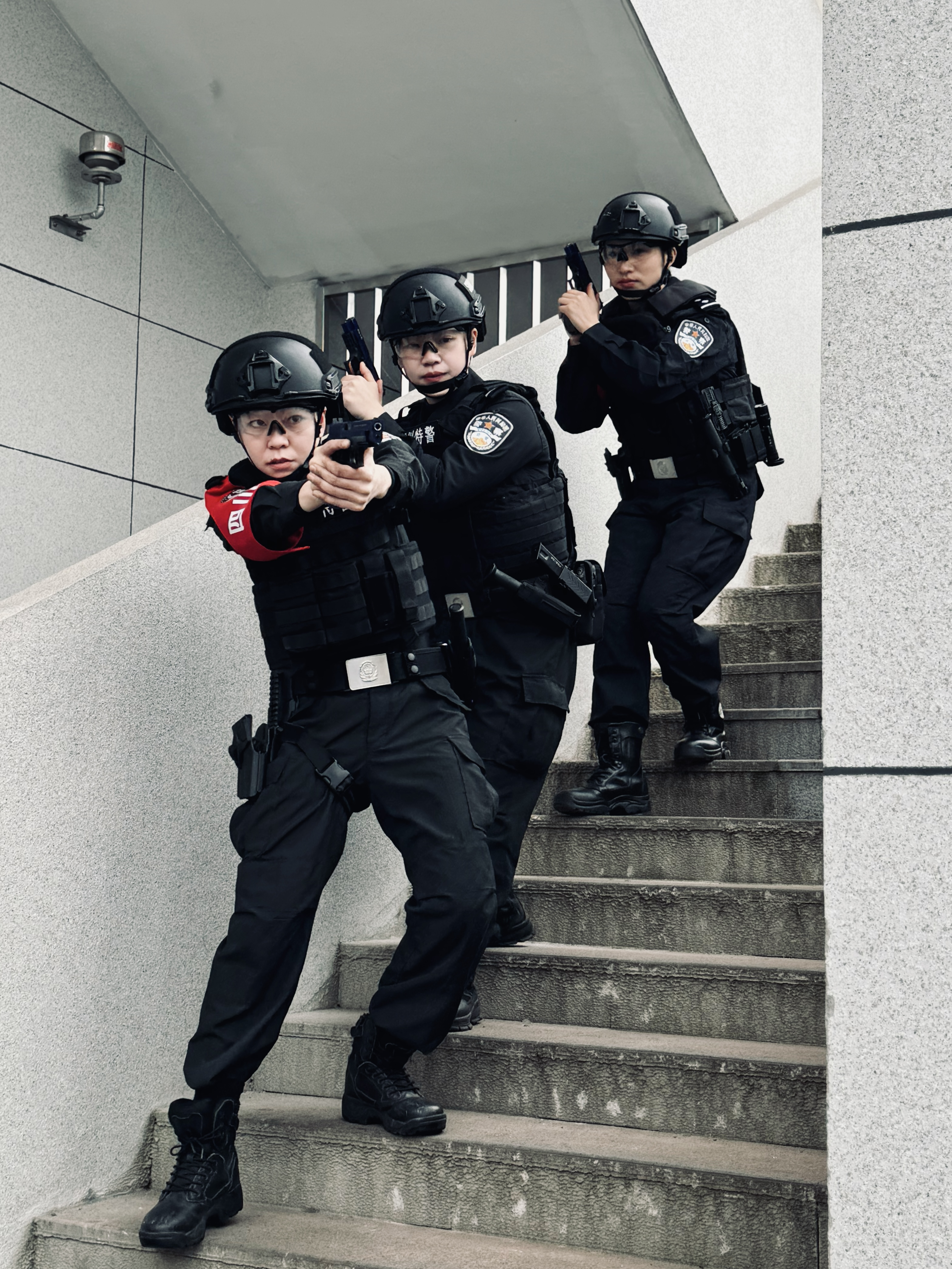 “前方墙体右侧,一名男子挟持一名儿童……”干净利落的手势中,关键信息无声传递,互相接应的两方女特警一手持枪,一手迅捷而熟练地通过战术手语精确翻译着指挥员的口令。闻讯而动,两方迅速形成包抄合围,这10秒不到的异常安静中,墙体后的“歹徒”已成瓮中之鳖……